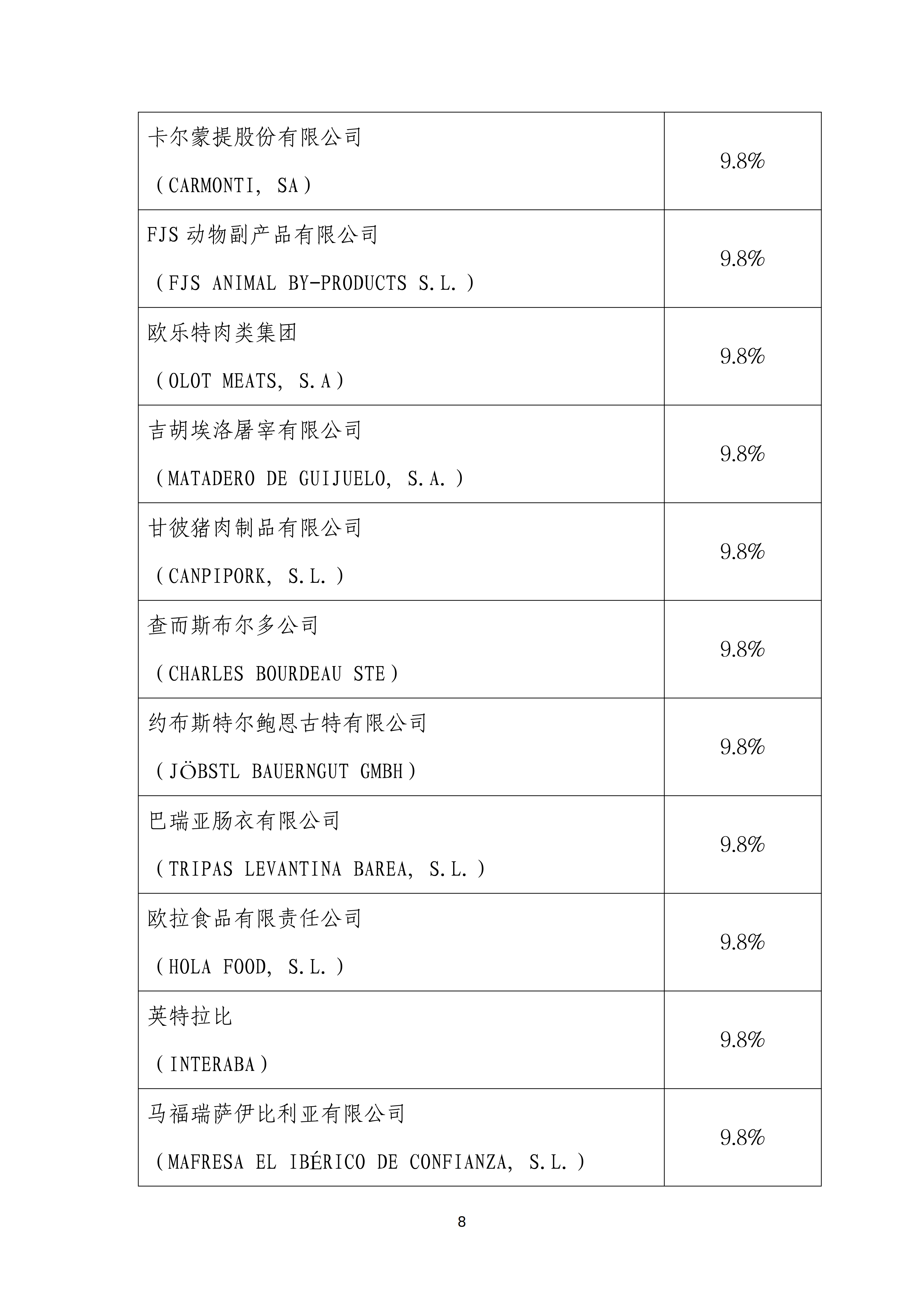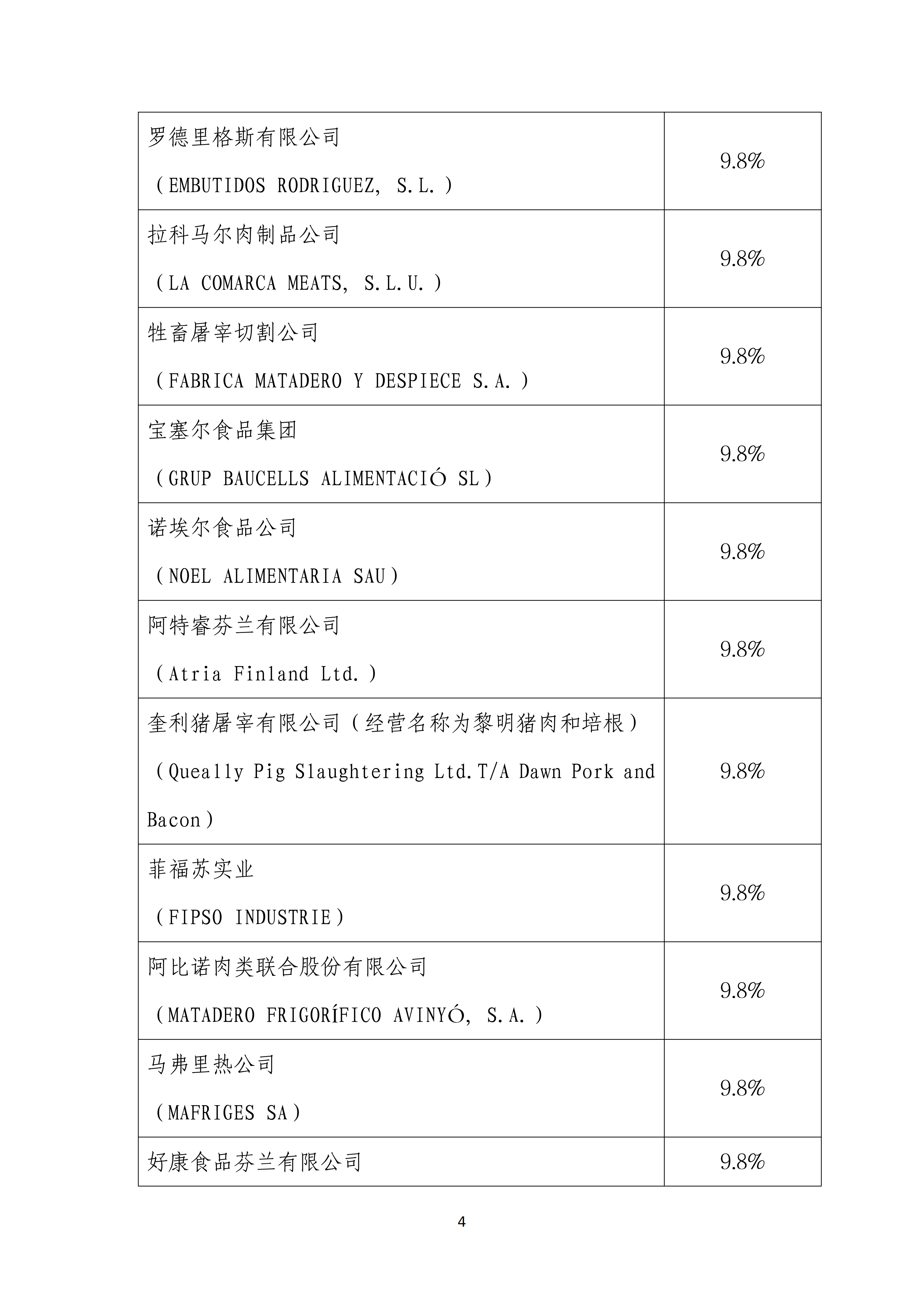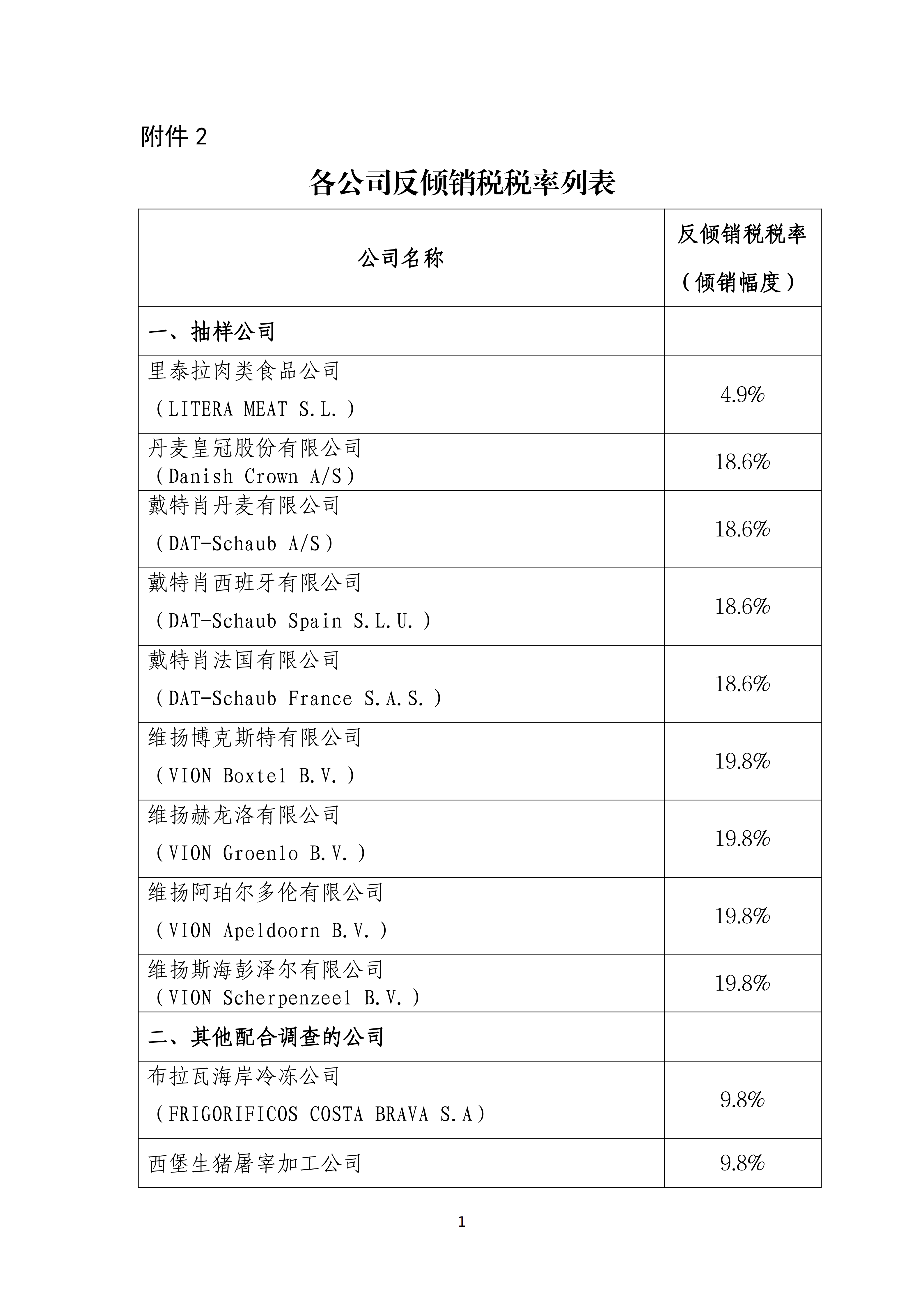 附件2:各公司反倾销税税率列表