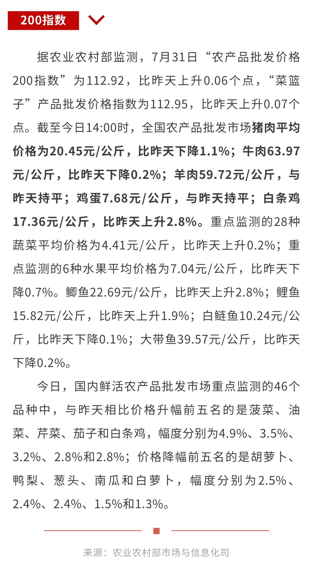 7月31日“农产品批发价格200指数”比昨天上升0.06个点