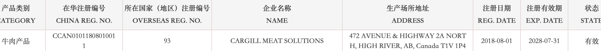 恢复加拿大1家牛肉产品(注册编码为:93)自2026年1月15日(含)后生产的输华产品进口准入。