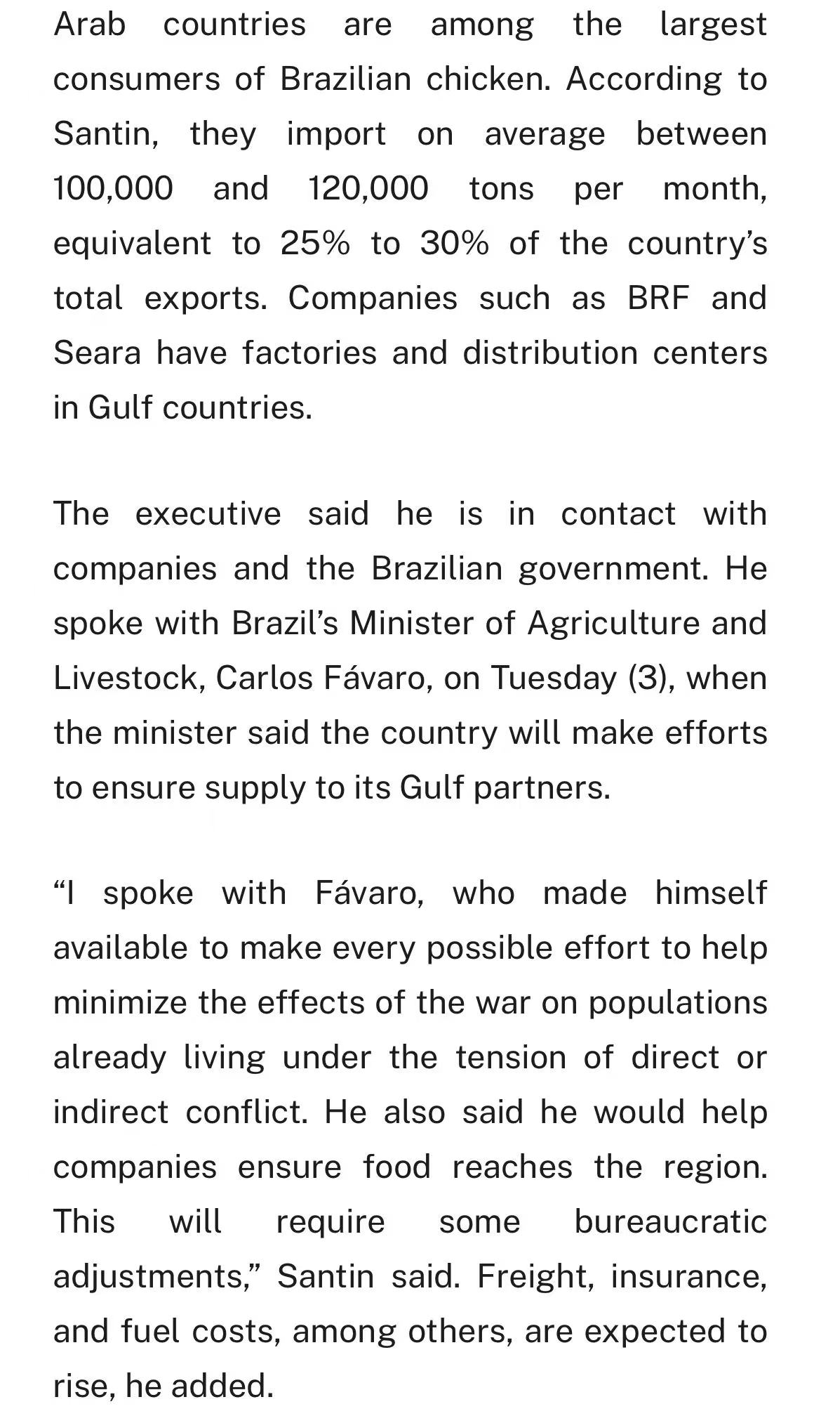 中东局势还在发酵,巴西鸡肉出口正受影响。