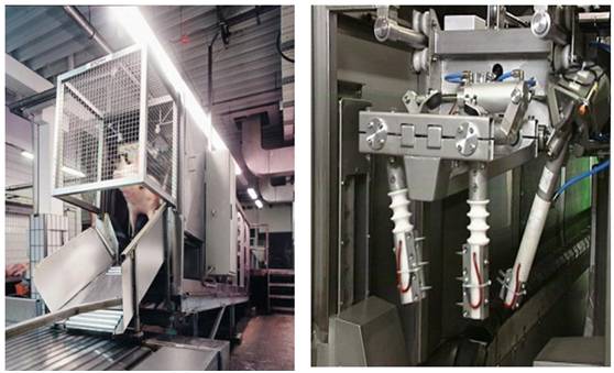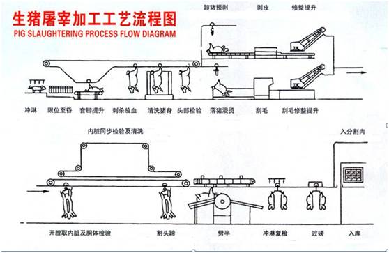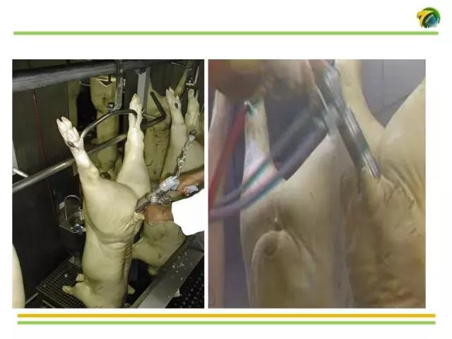 牲畜无紧张感,因此减少了猪体内糖原的分解,使牲畜屠宰后肉的最终PH 值低,保证肉的质量;由于牲畜在麻醉后失去知觉的状态深,便于刺杀和放血操作;二氧化碳加剧了牲畜的呼吸率,促进了牲畜的血液循环,使得牲畜刺杀后,放血比较彻底;生产能力完全可以满足流水线的需要;这种方法还可免由于电麻时造成的肌肉痉挛和导致PH值的大幅度变化;不会出现电麻时的血斑现象。