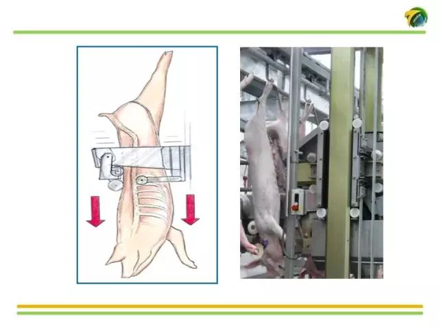 一般使用吊脚链条来挂猪猪两只后腿中的一只,所以猪后蹄产品中会有一只有暗色压痕影响产品销售。