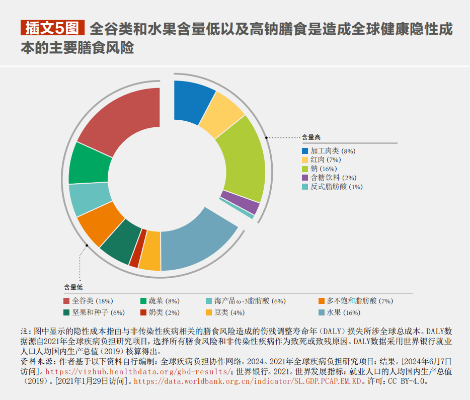 报告指出了13项对健康产生影响的膳食风险因素,包括全谷类、水果、蔬菜摄入量低;钠摄入超量;红肉和加工肉类摄入量高。但不同类型农业粮食体系之间存在显著差异。