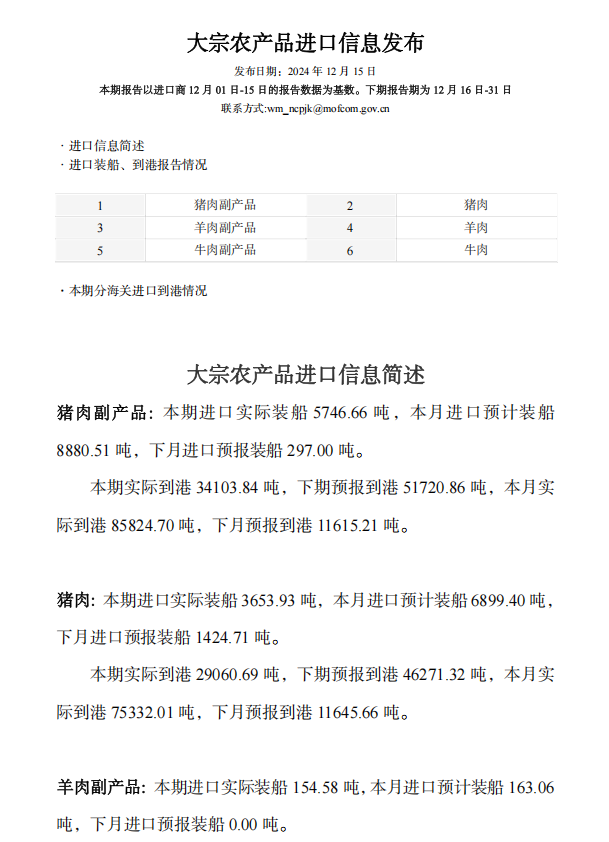 普悦 ·关注 | 2024年12月01日至15日详细进口肉类情况