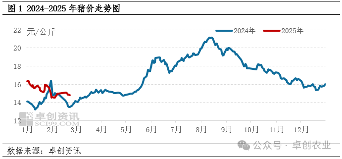 卓创资讯监测2月全国瘦肉型生猪价格震荡下滑,具体呈“降-涨-降”走势。截至2月26日,卓创资讯监测2月生猪均价为14.89元/公斤,其中最高为2月5日的15.61元/公斤,最低为2月11日的14.51元/公斤。春节后,需求明显减量,猪价承压下跌;随后肥标价差扩大,养殖端压栏、趁低价补栏二次育肥;二次育肥热度下降后,市场走货压力逐渐增大,养殖端多有降价走货心态,猪价缓慢下滑。