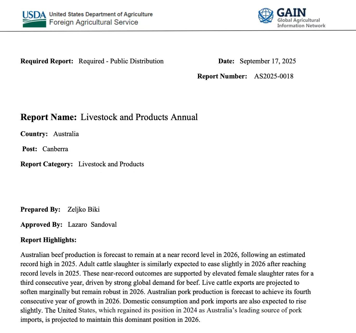 2025年美国对巴西牛肉加征50%关税后,澳大利亚牛肉的替代性需求显著增强。然而,澳大利亚本地加工产能已近饱和,限制了短期出口扩张空间。同时,高企的母牛屠宰率虽支撑了近年的高产,但也预示着长期供应压力可能逐步显现。