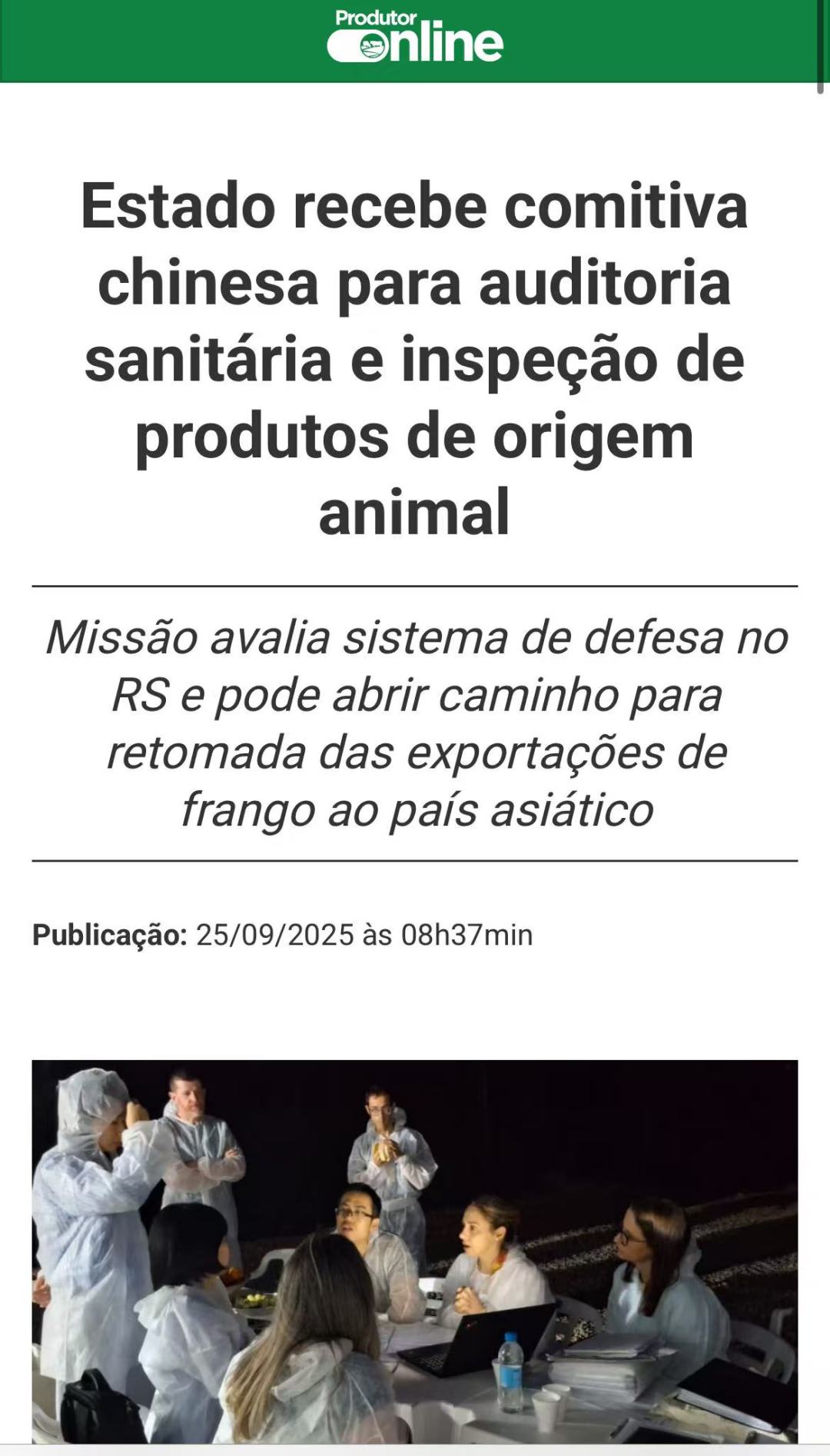 如果评估积极,自去年夏季以来被暂停的南里奥格兰德州禽肉对华贸易有望在近期重启。