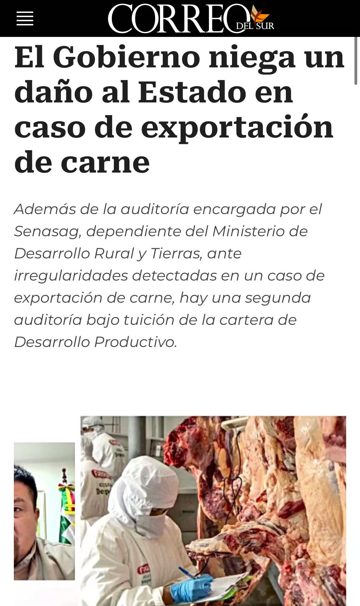 玻利维亚政府正对肉类出口涉嫌违规案件展开双重审计。农村发展和土地部及生产发展部分别对下属机构启动审查,其中国家农业卫生与食品安全局(Senasag)的审计报告预计近日完成。