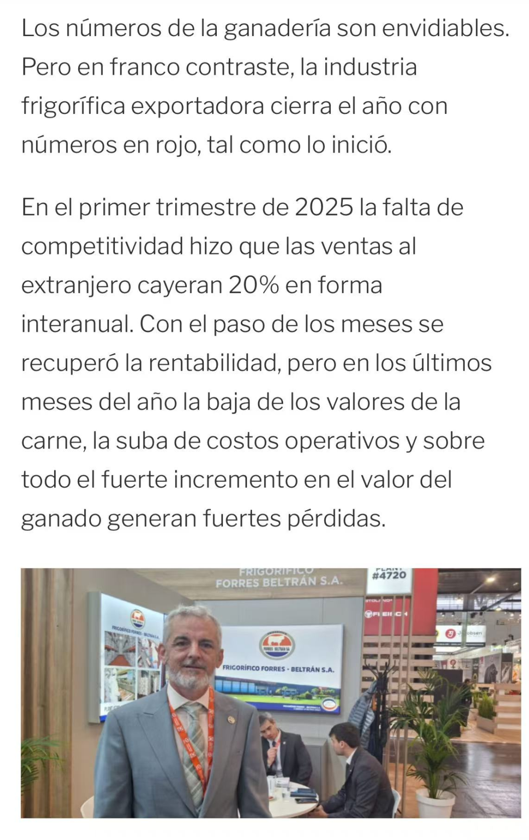 莫雷洛管理的Beltrán集团在阿根廷拥有八家加工厂及育肥场等全产业链资产。其旗舰工厂Forres Beltrán约60%产量用于出口。在国内外市场的双重挤压下,阿根廷牛肉出口商正面临艰难时刻。