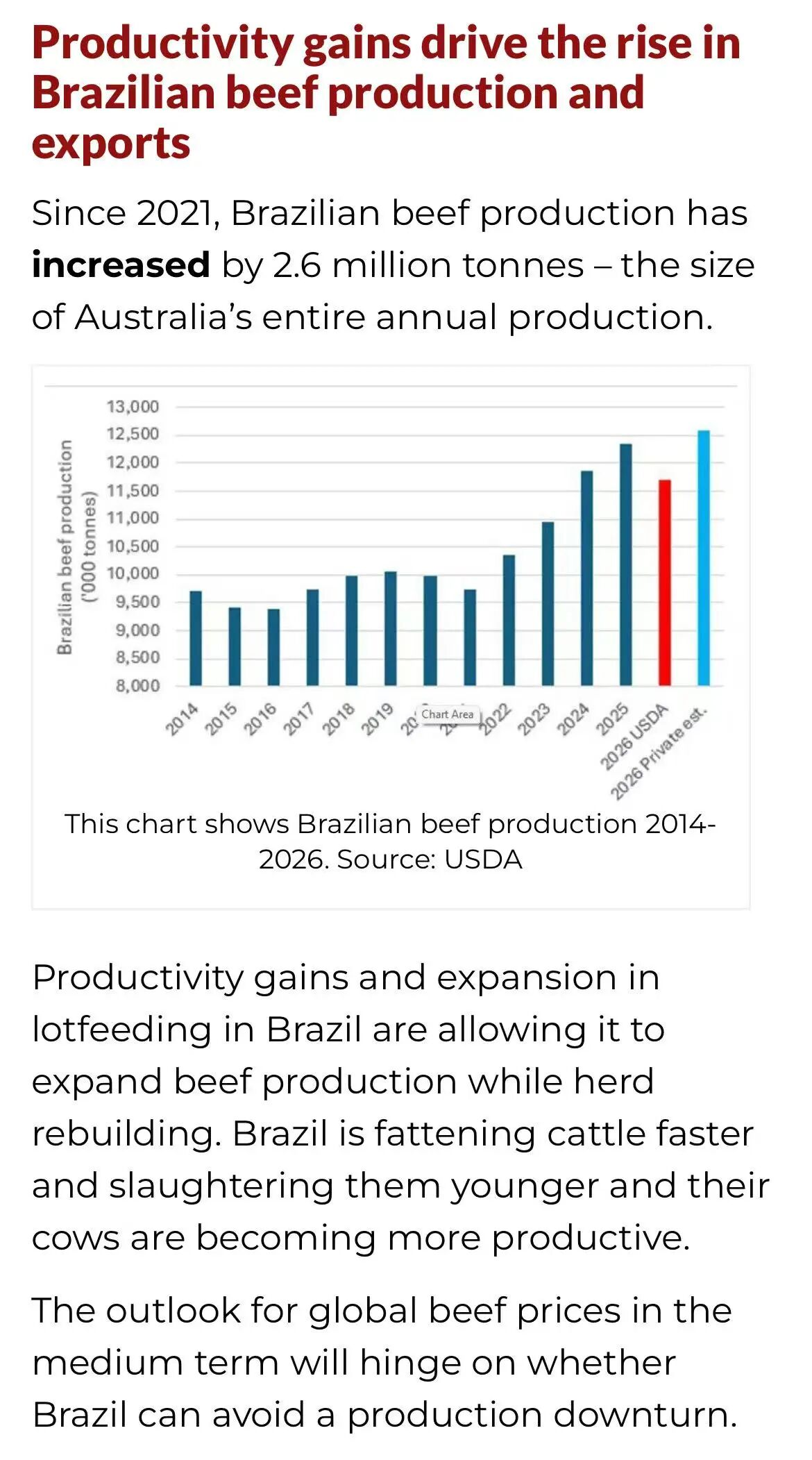 更深层次的影响在于供应端。近年来巴西通过提升养殖效率,实现了在牛群增长同时产量的大幅跃升。这种结构性的、可持续的产能扩张,意味着其寻求出口的牛肉是长期且富有价格竞争力的。因此,本轮由中国政策引发的贸易转向,其影响将是深远而持久的。