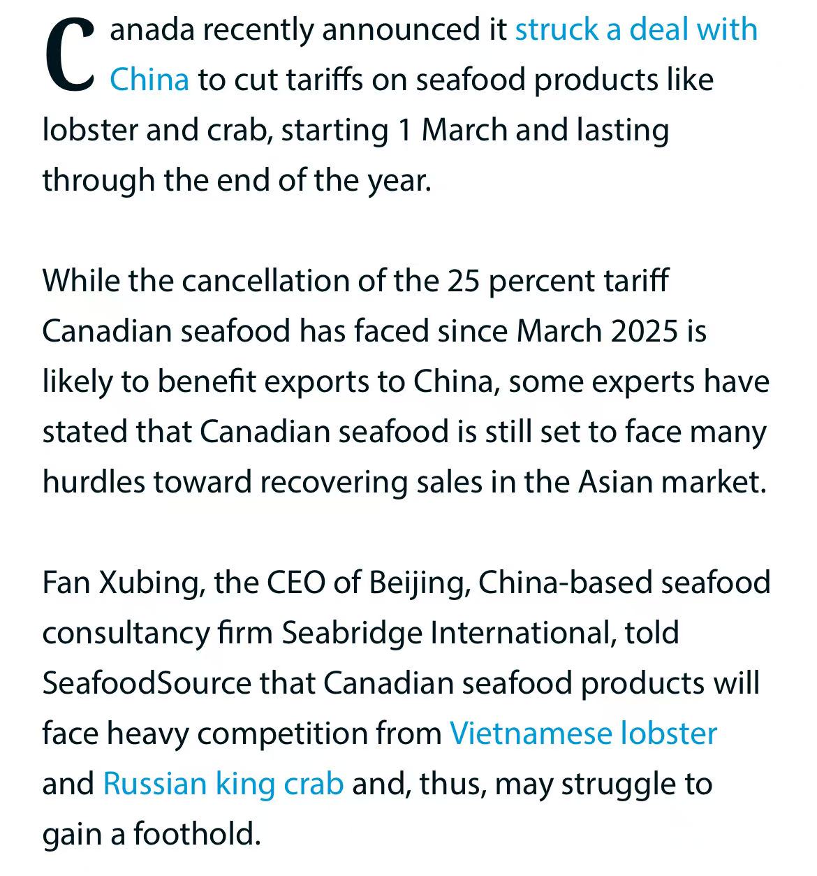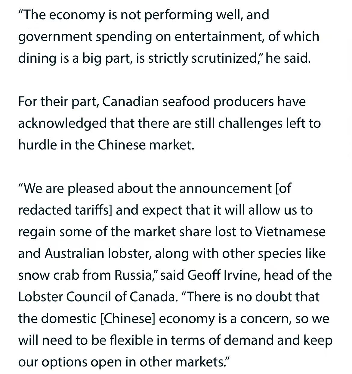 整体来看,关税取消提供了准入机会,但加拿大海产品能否真正“回归”,仍需在市场中进行艰苦竞争。
