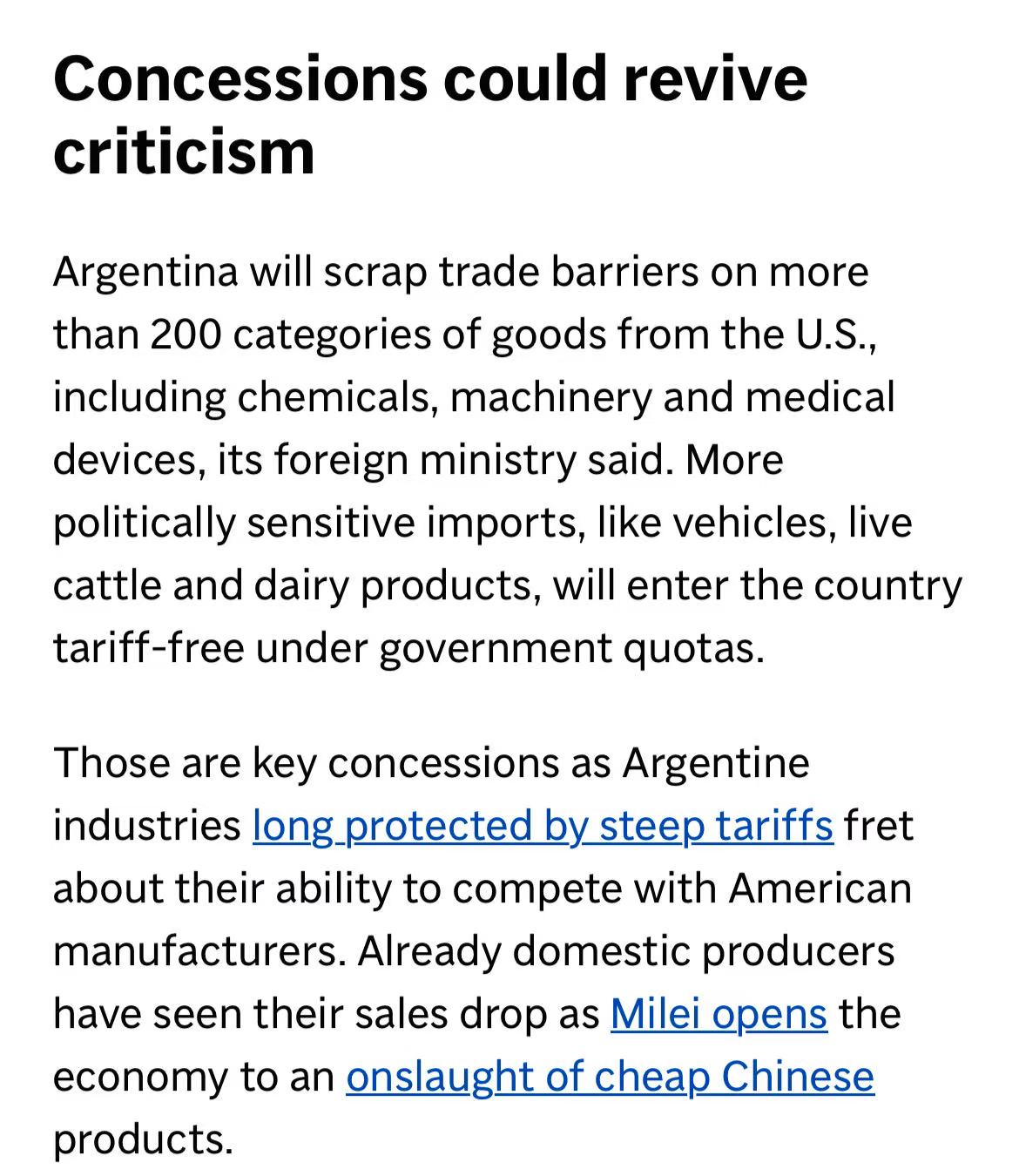 此次协议是米莱政府推行经济开放政策、强化对美关系的重要成果。除牛肉外,阿根廷将取消对美国化学品、机械设备等200多类商品的贸易壁垒,而美国也将对阿根廷共1675种产品减免对等关税。尽管阿根廷国内部分产业对开放市场存有担忧,但协议被视为阿根廷重返全球贸易体系、重塑国际信誉的关键一步。