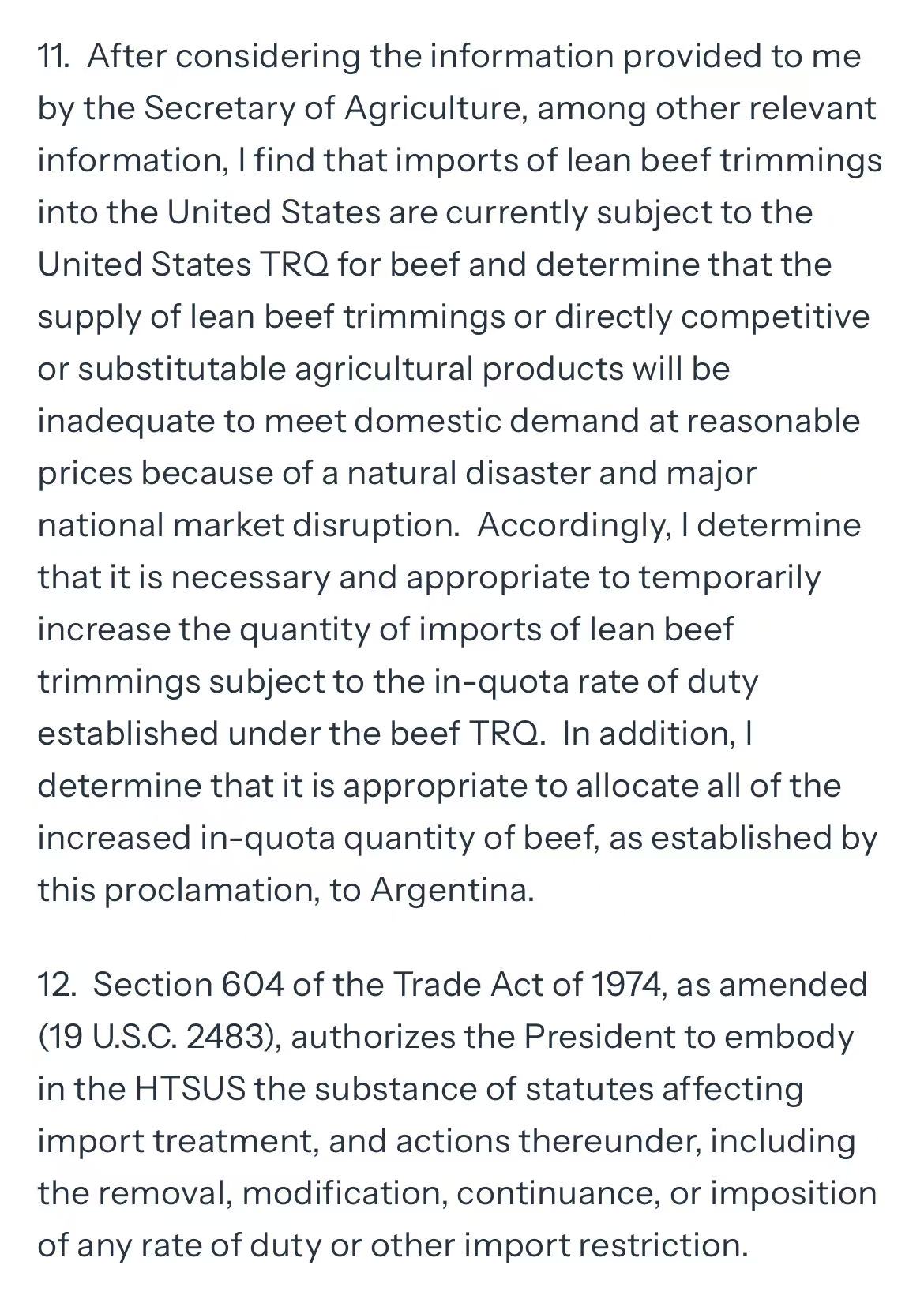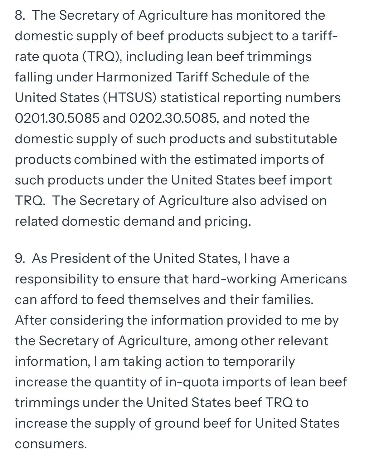 为应对国内牛肉供应短缺与价格上涨压力,美国总统特朗普近日签署行政令,批准在《互惠贸易与投资协定》框架下,对阿根廷新增8万吨牛肉进口优惠关税配额。