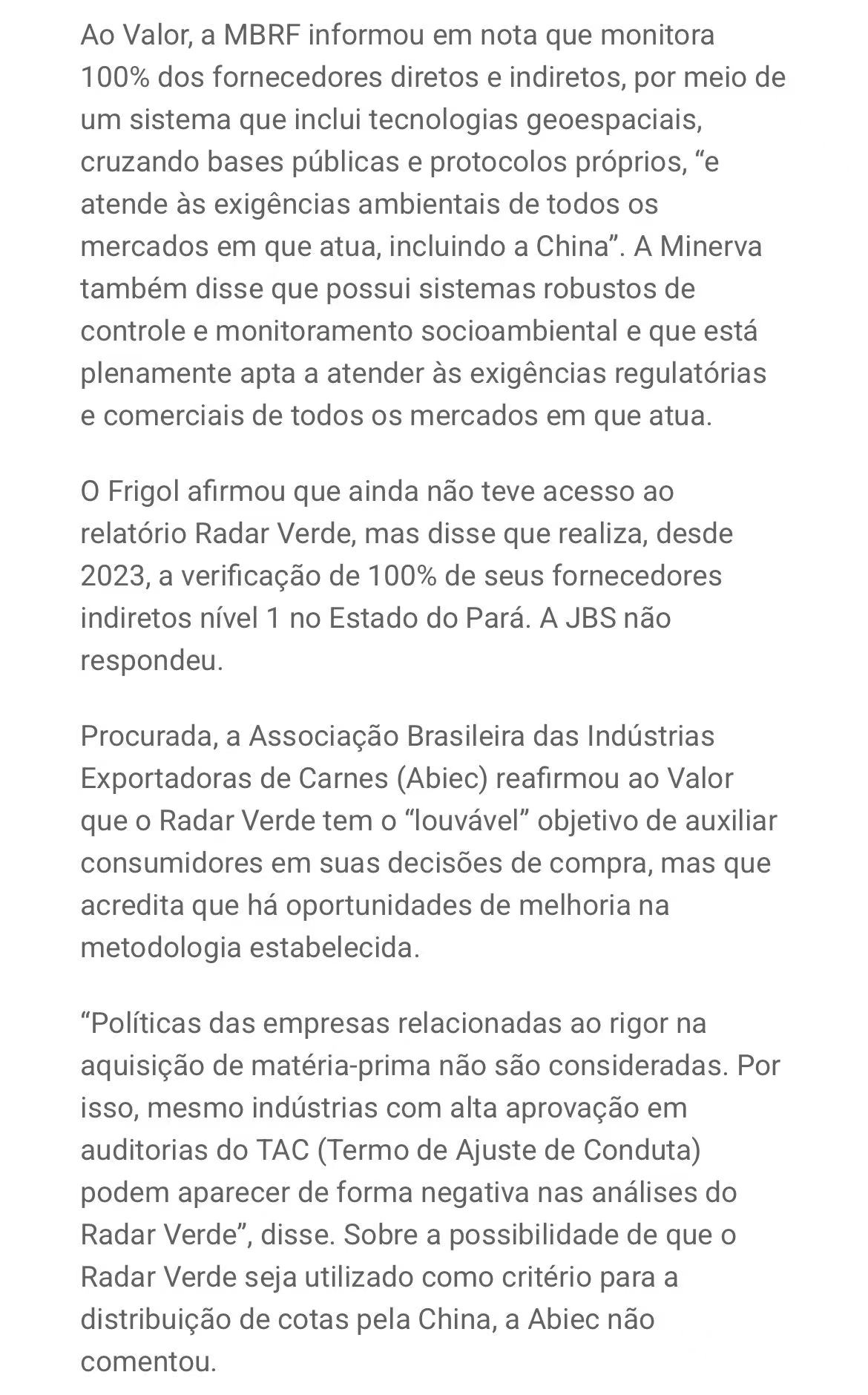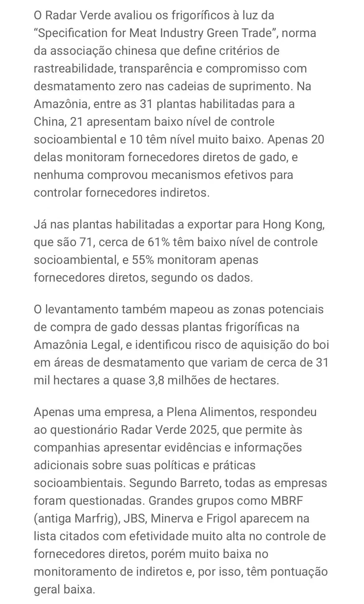 正常采购,心中有数。不用因为这份报告恐慌性囤货或换供应商,但可以开始留意合作工厂在间接供应商追溯方面的能力。那些在直接供应商管控上做得好的大型企业(如MBRF、Minerva),仍然是可靠的选择。