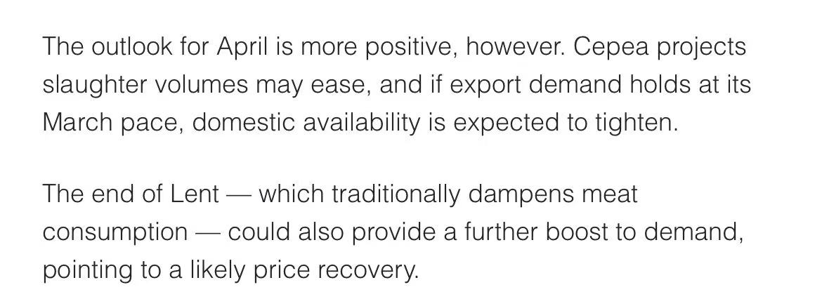 普悦 ·资讯 | 四旬期结束+供应收紧,巴西猪肉价格4月有望迎来反弹