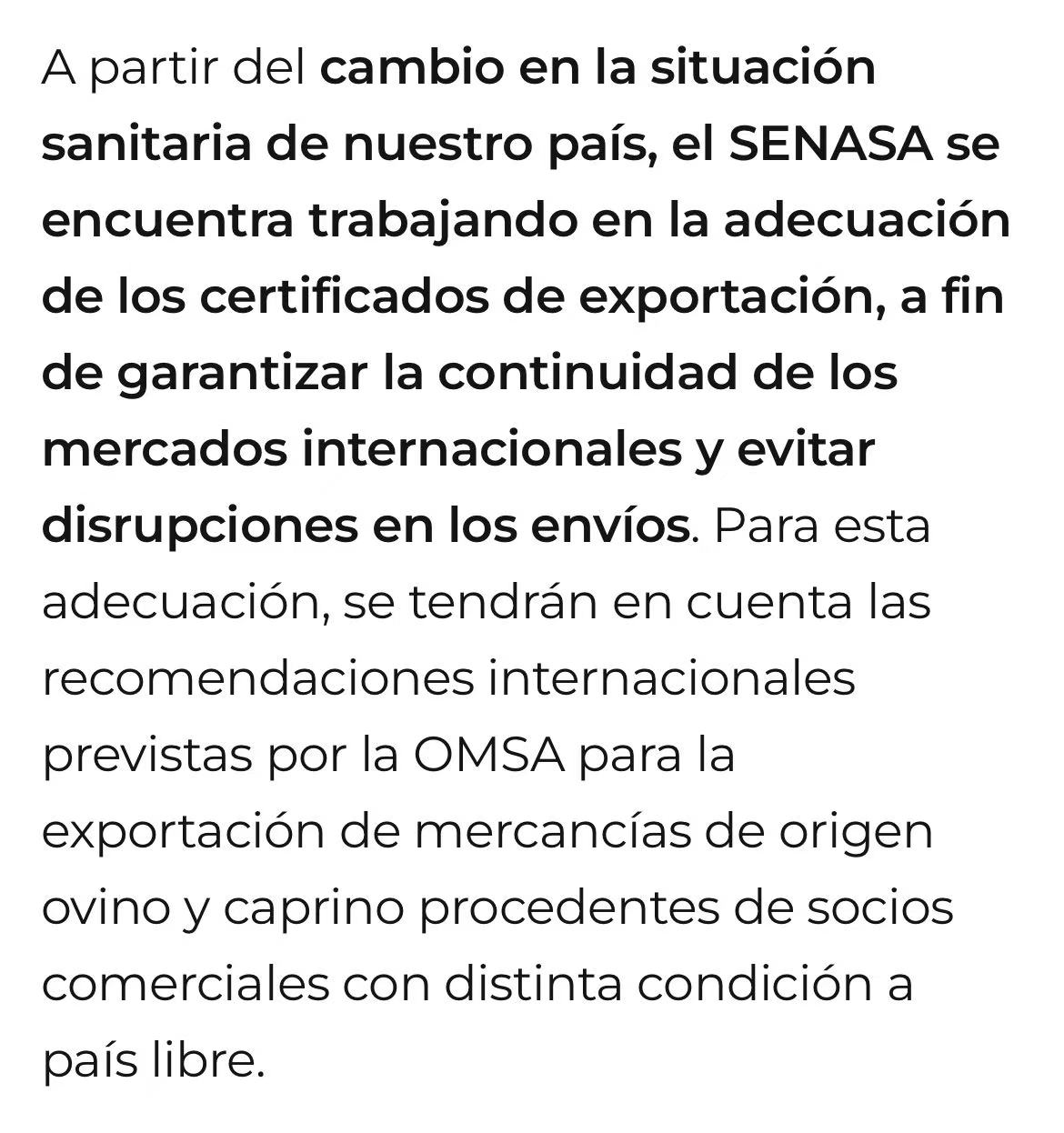 出口方面,Senasa将无法再签发带有“无痒病”条件的卫生证书。羊肉、活羊、乳制品等出口面临限制,但去骨肉、皮革、明胶、羊毛等经风险处理后可继续出口。该病不传染人类,也不影响牛。