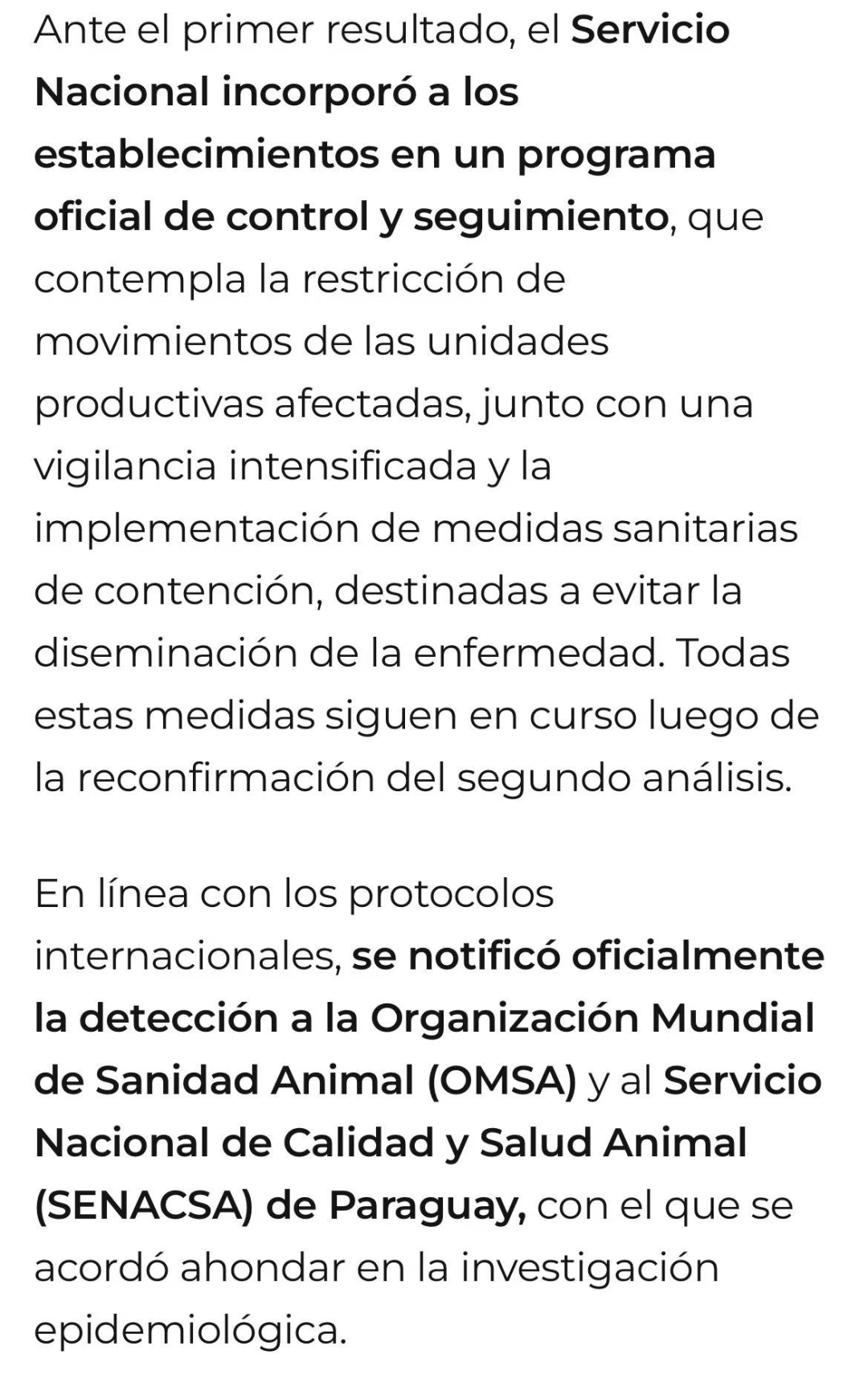 阿根廷已正式失去“无痒病”国家资格,并通报世界动物卫生组织(WOAH)。Senasa已对涉事养殖场实施动物流动限制、加强监测等防控措施。