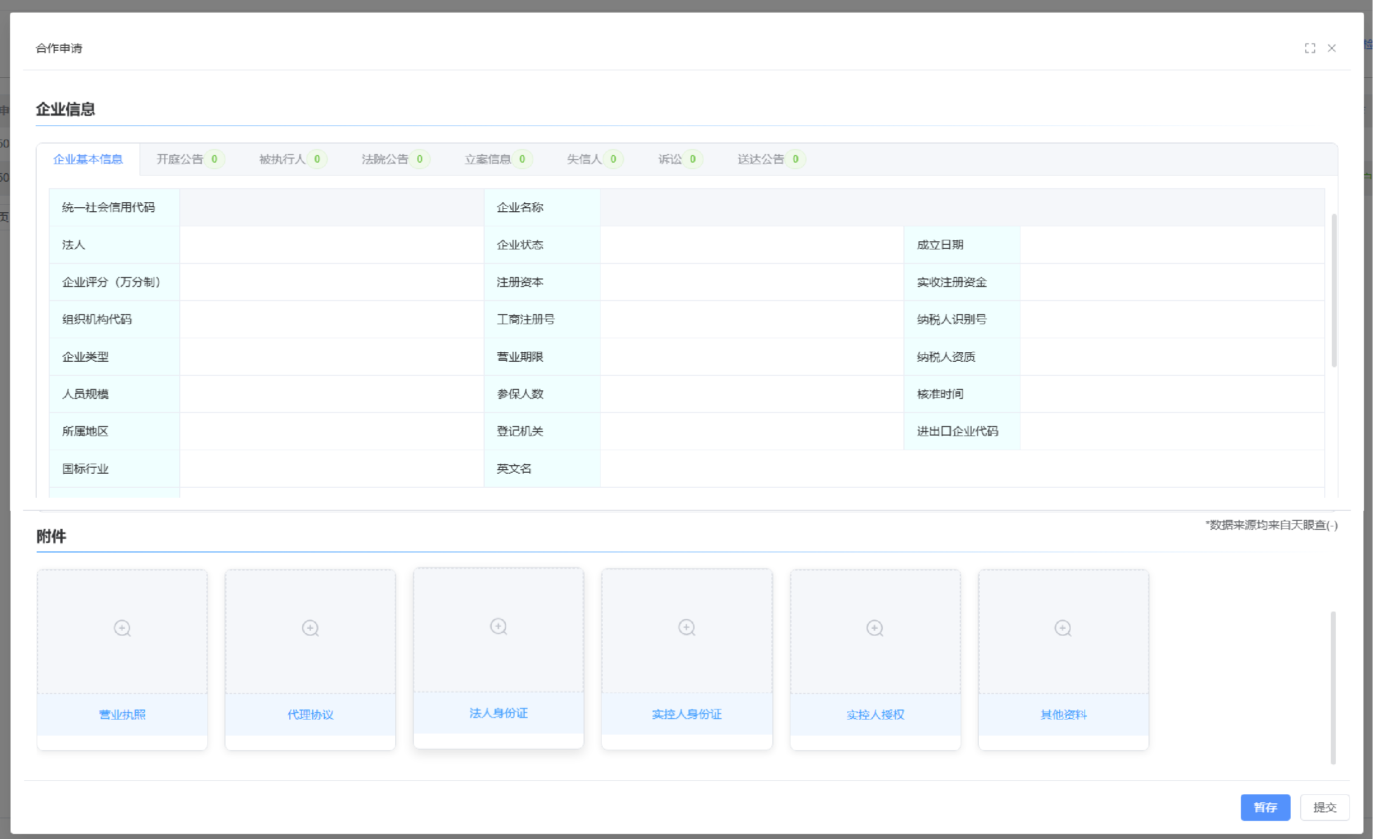 2. 附件信息:需要按要求上传营业执照、协议、法人身份证等。填写完成后,先点“暂存”保存信息,再点“提交”后,待集采服务商审核完成后,才能签署供应链服务合同。