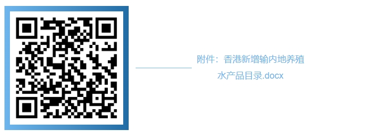养殖水产品,是指人工养殖的、供人类食用的水生动物产品及其制品,不包括《濒危野生动植物种国际贸易公约》(CITES)附录和国家重点保护野生动物名录所列物种、活水生动物及水生动植物繁殖材料。香港新增输内地养殖水产品目录见附件。