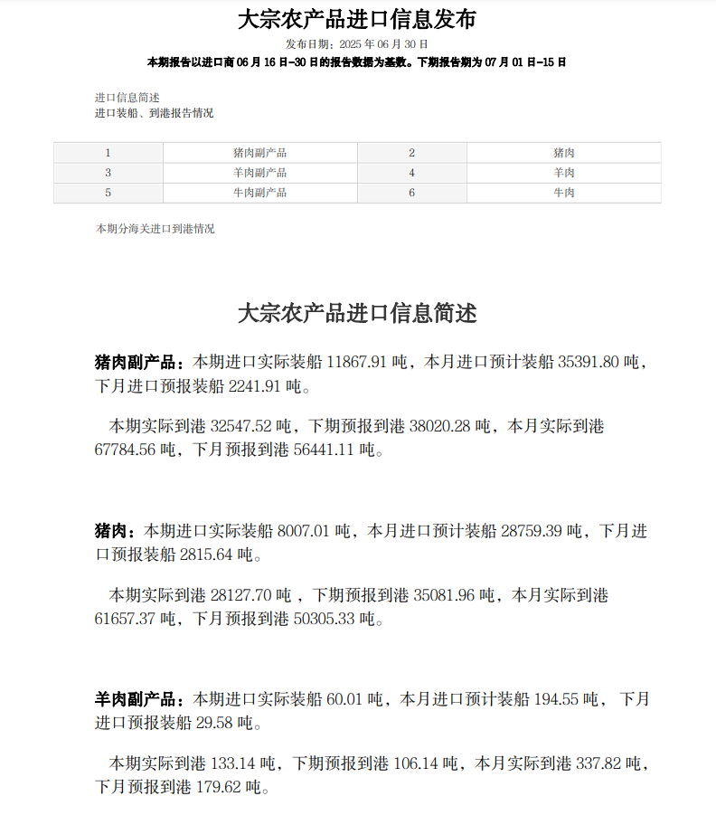 普悦 ·资讯 | 大宗农产品进口信息发布(肉类)