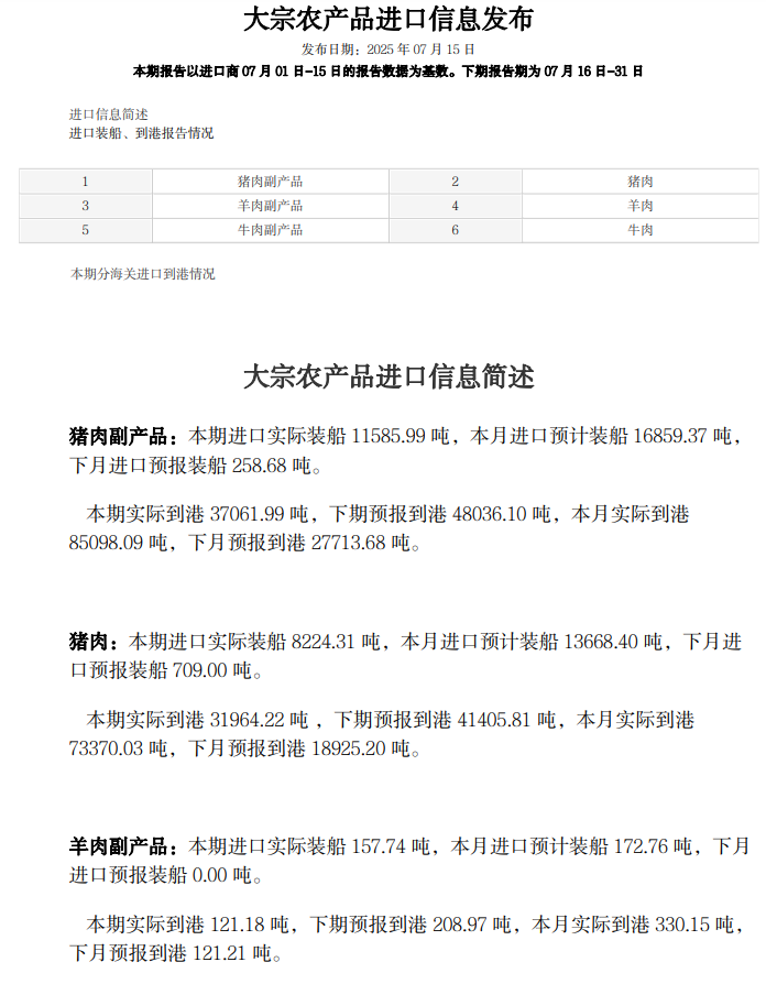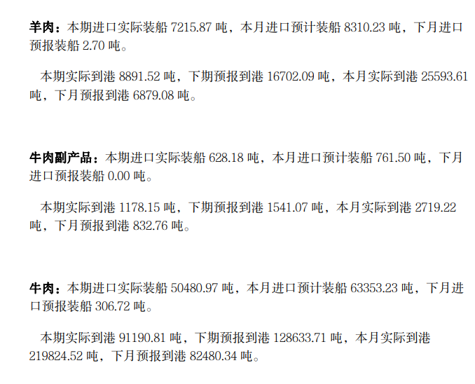 大宗农产品进口信息发布(肉类)