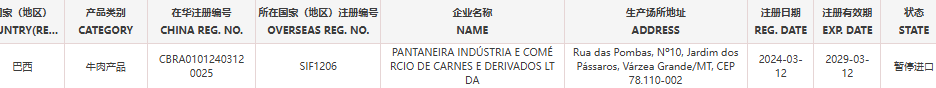 普悦 ·资讯 | 【准入更新】暂停巴西一家牛肉企业产品输华
