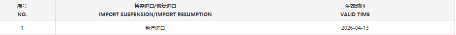 暂停受理巴西1家牛肉企业(注册编码为:SIF1206)自2026年4月13日(含)起启运的输华产品进口申报。