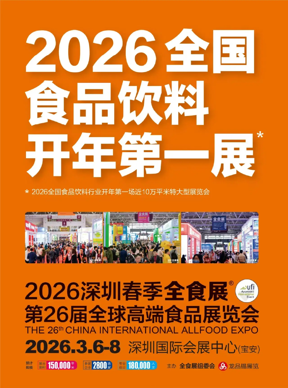 “全球高端食品展览会”,简称全食展,英文简称为Allfood Expo,由中国副食流通协会支持,龙品锡展览主办,与中国糖果零食展览会、中国冰淇淋冷食展暨全国速冻食品展览会(中冰展),形成B2B行业会展矩阵。自2014年以来,全食展在宁波、深圳、北京、西安、济南、厦门和上海等地已连续成功举办25届。作为中国食品会展业头部品牌,全食展备受广大食品饮料和冷链食品行业厂商的青睐。