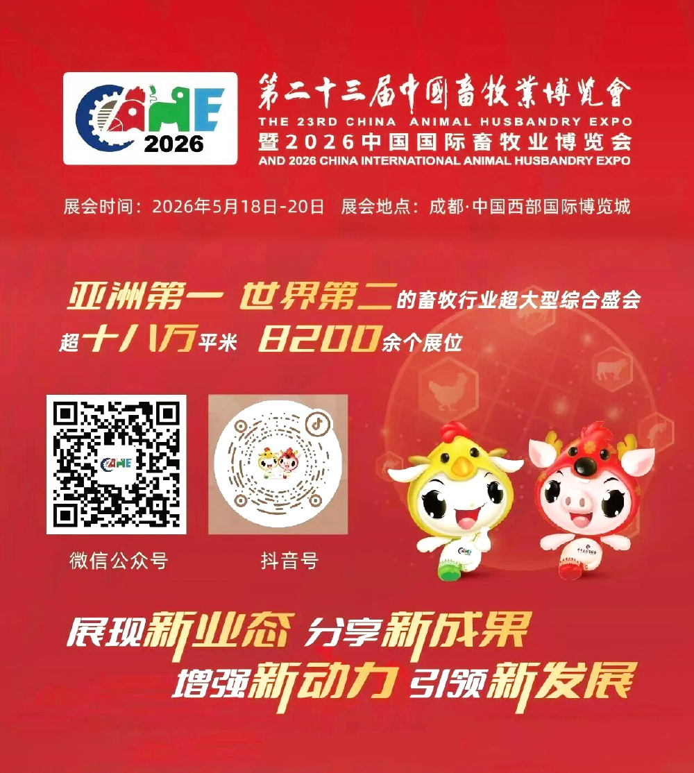 2026年是国家“十五五”的开端之年。第二十三届畜博会将在总结“十四五”畜牧业发展成就经验的基础上,以新质生产力为引领,以促进畜牧业高质量发展为主线,以创新为动力,以“展现新业态、分享新成果、增强新动力、引领新发展”为主题,规划展位8000余个,展会规模18万平米,展览展示内容涵盖畜牧业全产业链,包括:国内外畜禽养殖及深加工、名特优畜产食品、饲料、兽药疫苗、动物保健品、饲料添加剂、畜牧生产与养殖相关装备、环保粪肥处理装备、生物质能源、草业及其深加工产品、包装与运输、畜牧业综合服务等。为推动畜产品消费升级,在2025年 “品青岛啤酒、尝畜产美食”品鉴活动的基础上,再次举办“品天府烟火、尝畜产美食”大型品鉴活动,同期还将召开“第三届畜牧业高质量发展大会”、“第五届(2026)智慧畜牧业大会”等百余场高规格会议和活动,并特设“十四五”畜牧业发展成就展示专区,这必将又是国内外畜牧领域的一场大型顶级盛会。作为大会主办方,中国畜牧业协会诚挚邀请国内外畜牧行业及相关领域的企事业单位、机构组织和各界人士踊跃参展参会,共绘行业发展新蓝图。