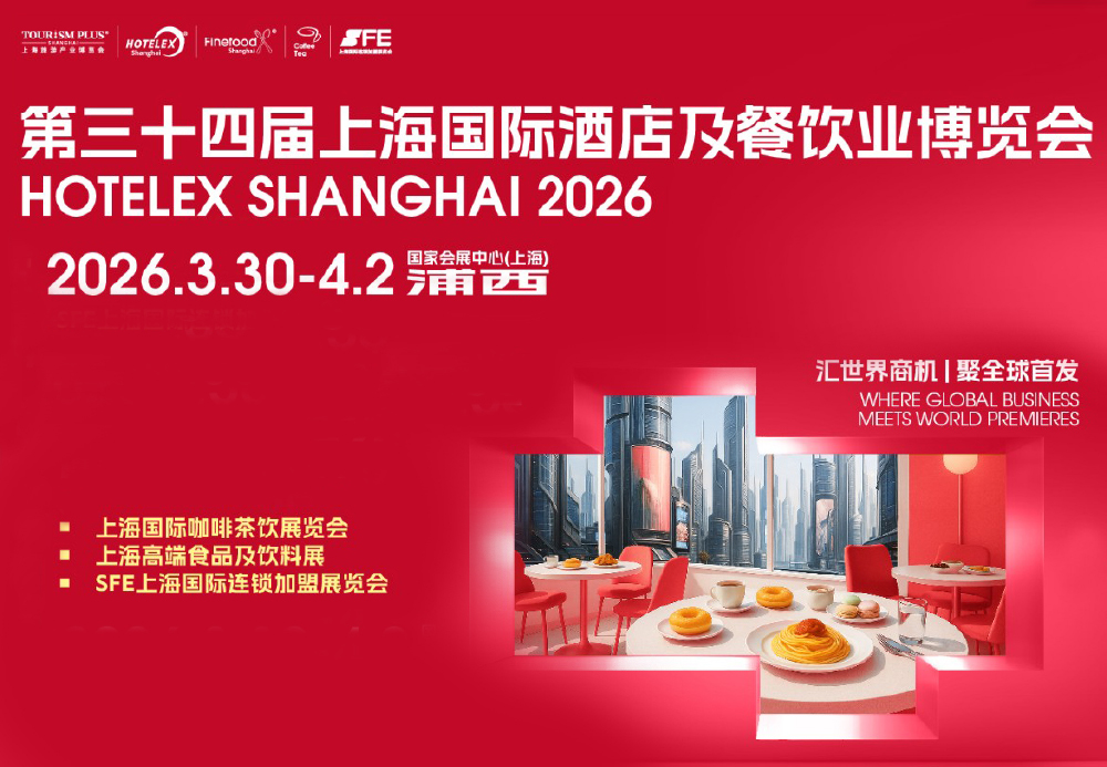 HOTELEX上海展将在2026年3月30~4月2日在上海盛大举办!展会将继续在浦西虹桥的国家会展中心全面铺开,火力全开。同时将引入来自酒店及餐饮业、食品饮料、咖啡茶饮、连锁加盟等行业上游供应链的千家优质展商、更以数十项精彩丰富的活动赛事及高峰论坛为万名专业观众呈现出一场精彩的食饮盛宴!