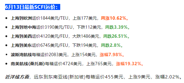 10、美西运价大跌!欧线运价逆势上扬 来源:海运网