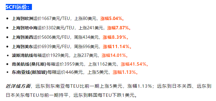 1、四大航线继续全面起涨!南美飙涨近42%!分析师:已触顶开始回落 来源:海运网