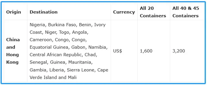 马士基调整中国内地和中国香港至非洲港口旺季附加费,6月23日生效,每20尺柜1600美元,每大柜3200美元。