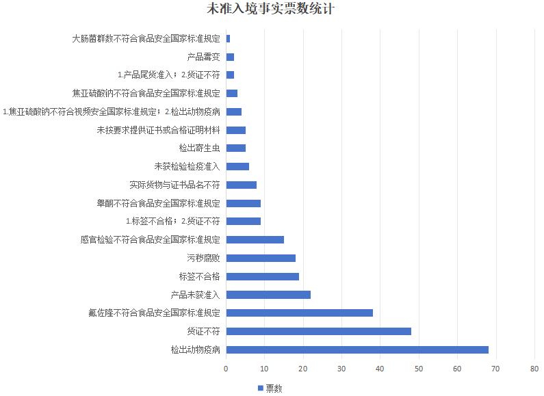 检出动物疫病:占据整体问题的第一位,高达68票。丹麦的猪肉产品、厄瓜多尔的白虾和印度的虾产品均受此影响。