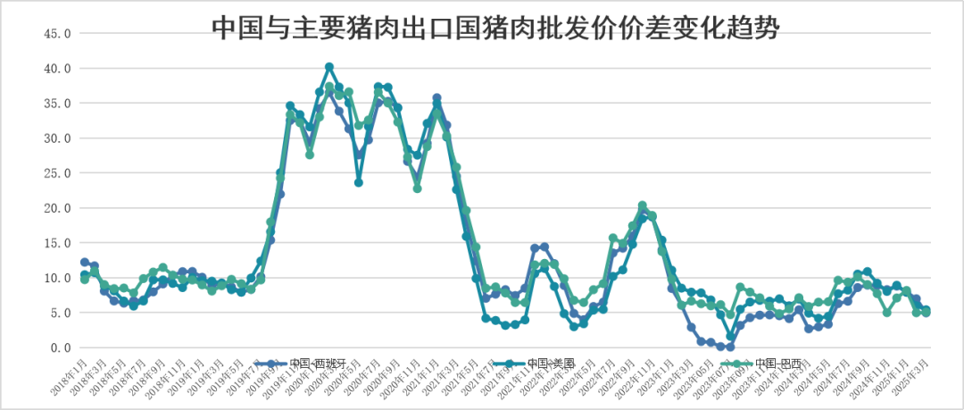 贸易方面,2月份,美国猪肉出口同比下降,巴西猪肉出口同比增长。从美国看,2月份猪肉出口25.6万吨,同比降4.8%。其中,对华出口1.7万吨,同比增17.4%。1—2月猪肉出口51.8万吨,同比降3.3%。其中,对华出口3.6万吨,同比增37.1%。从巴西看,2月份猪肉出口10.1万吨,同比增19.8%。其中,对华出口1.7万吨,同比降29.0%。1—2月猪肉出口18.9万吨,同比增12.4%。其中,对华出口3.6万吨,同比降22.8%。