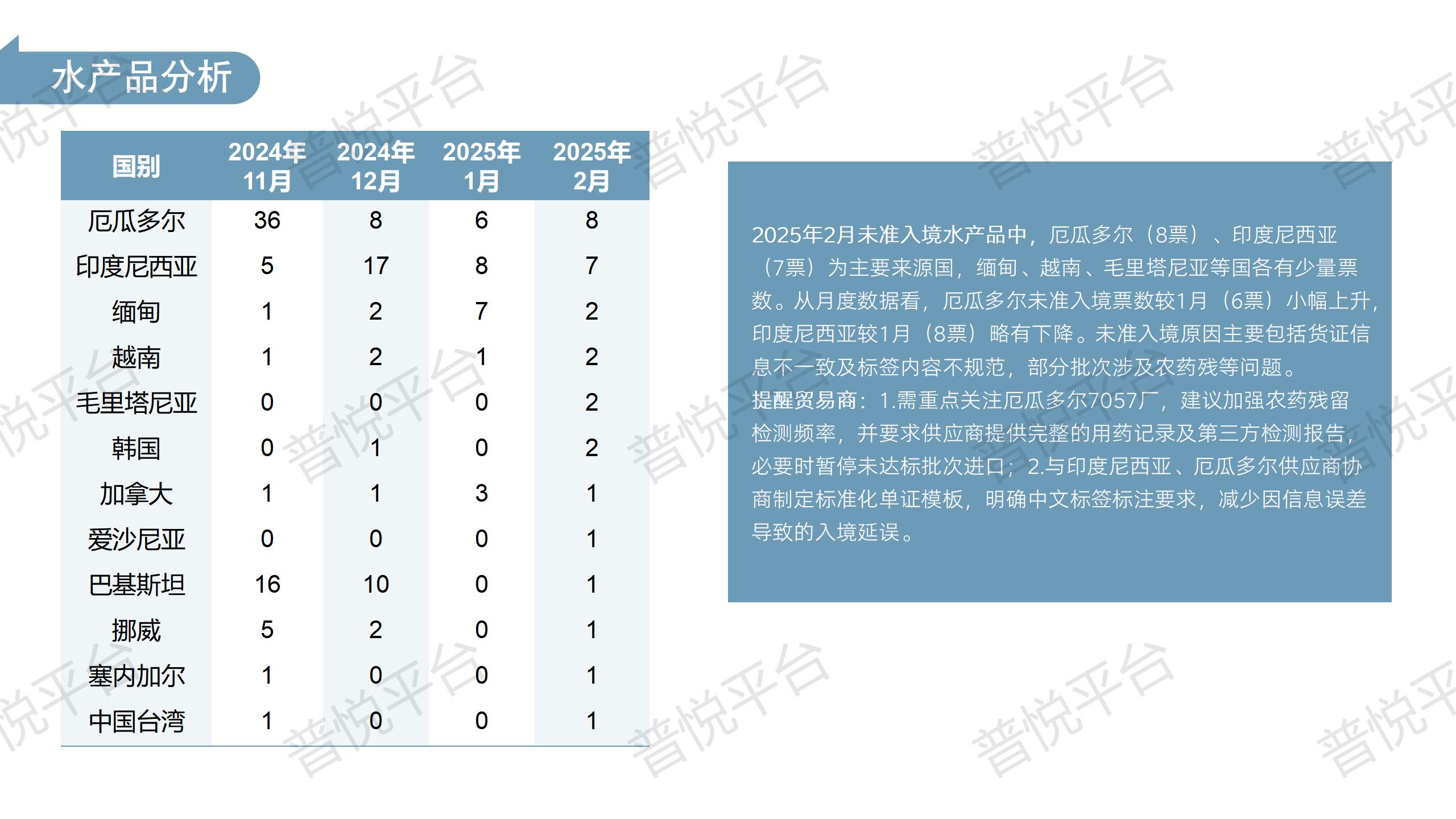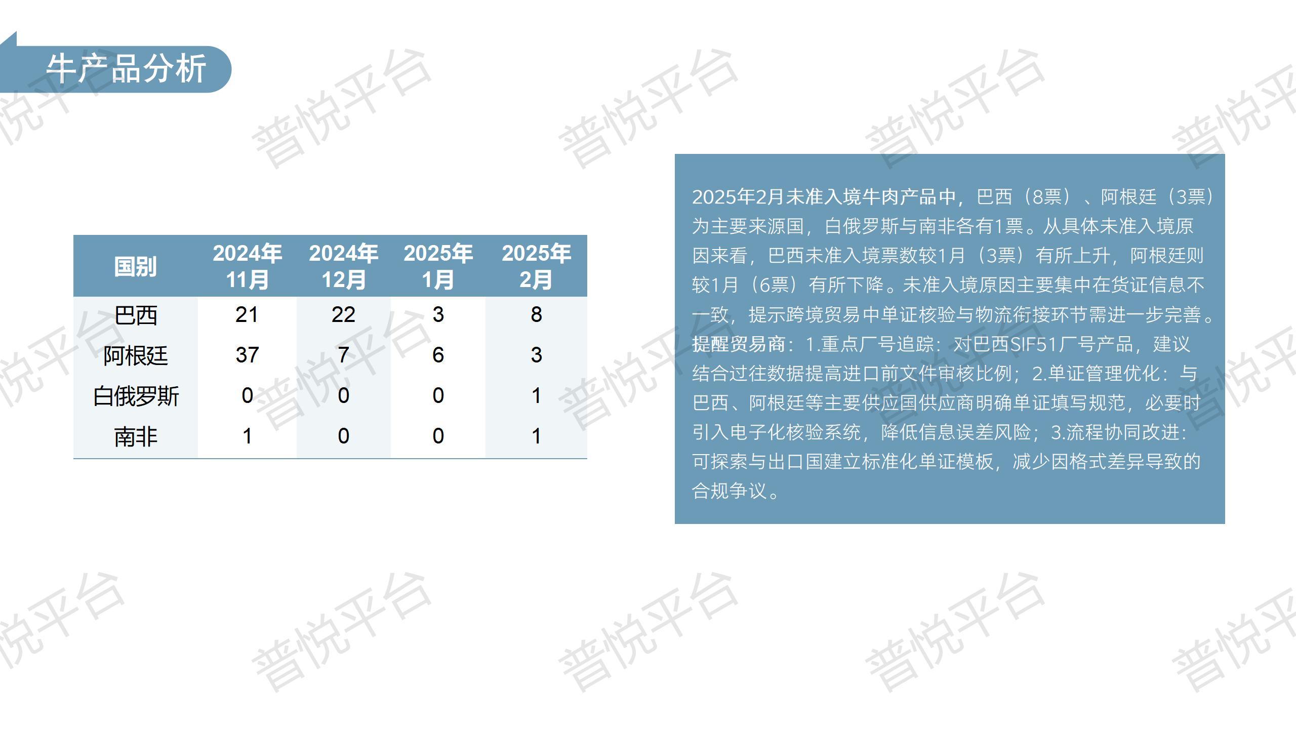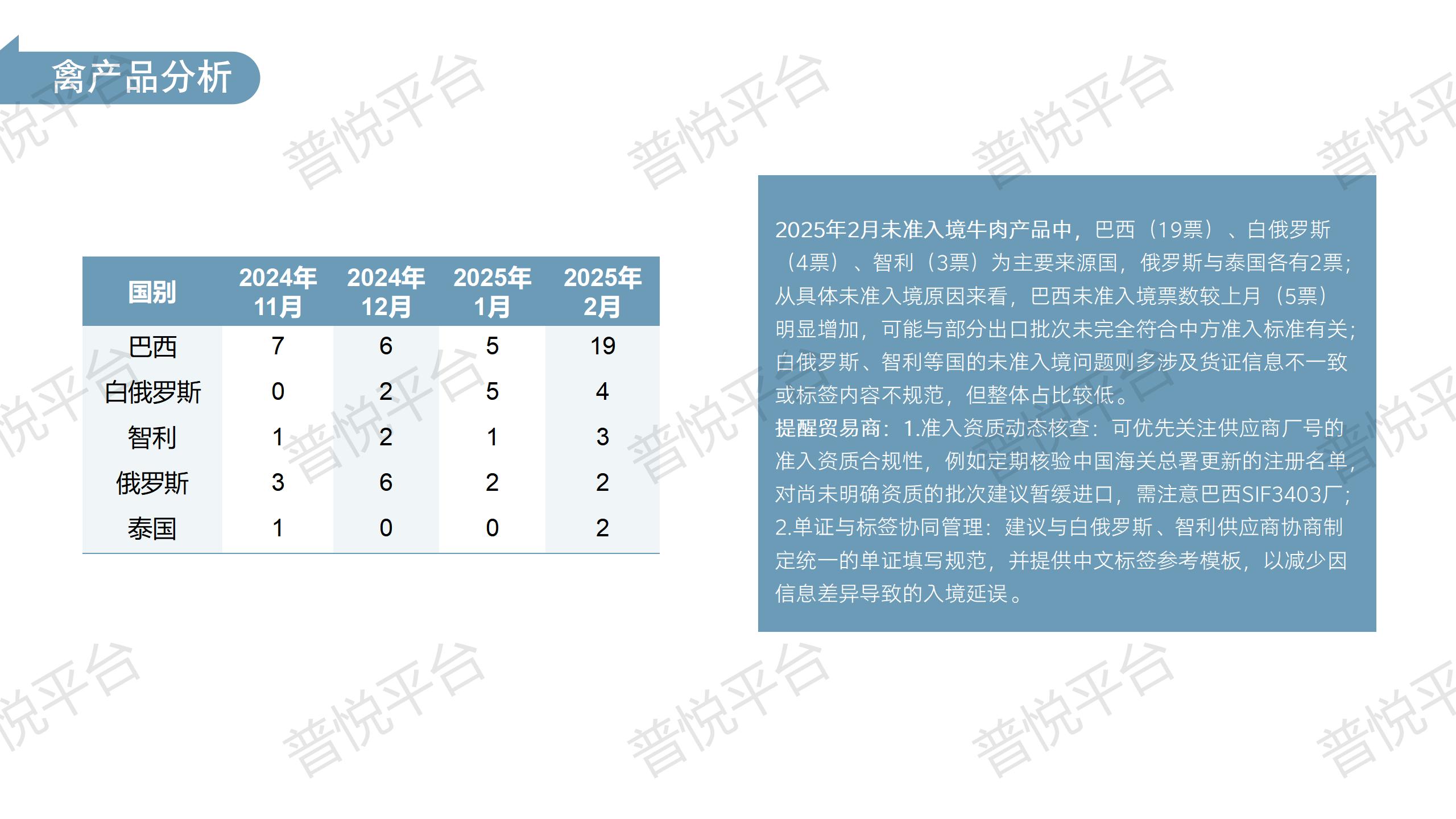 2025年1月未准入境猪、牛、羊、禽、水产品的食品信息