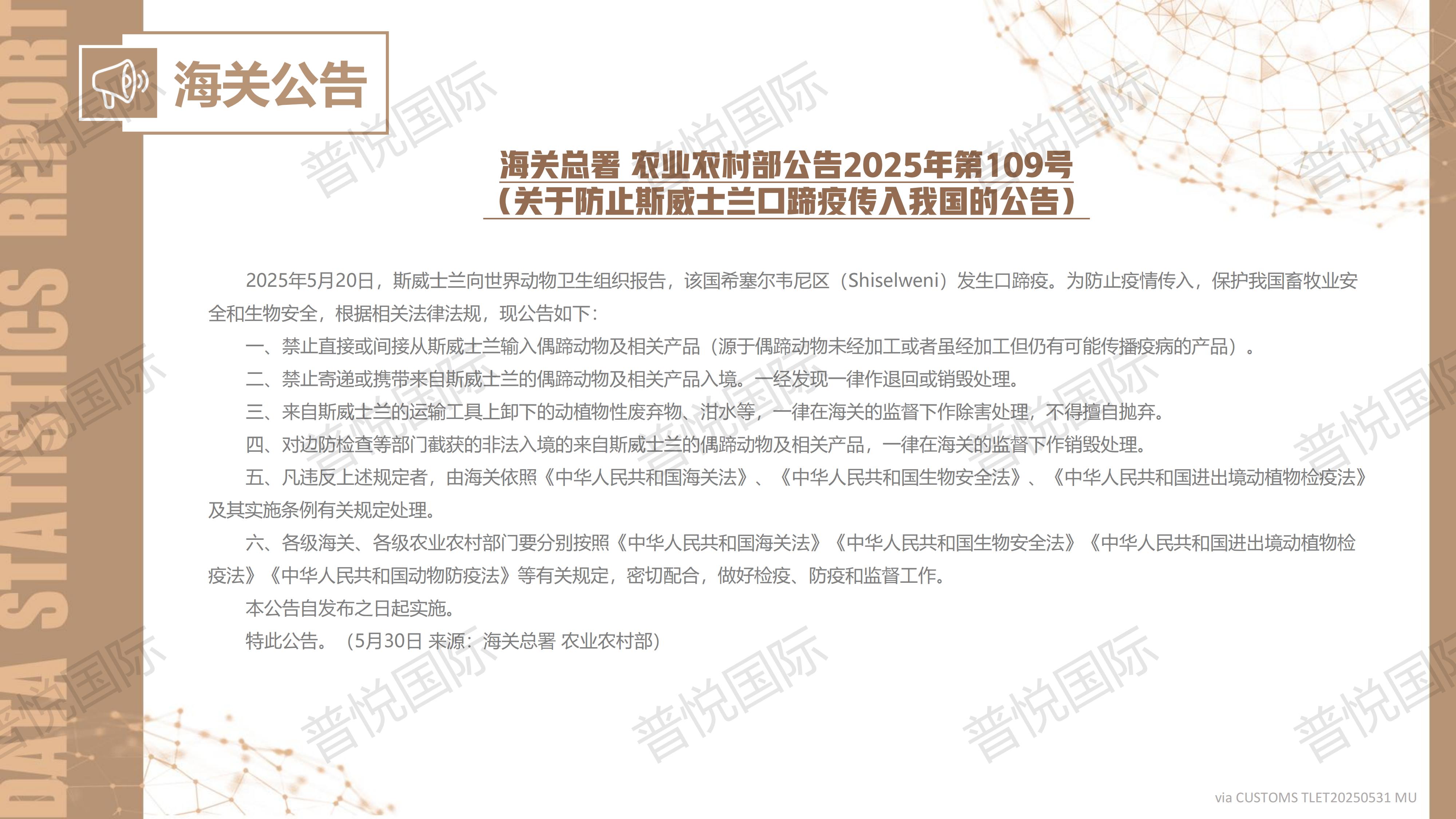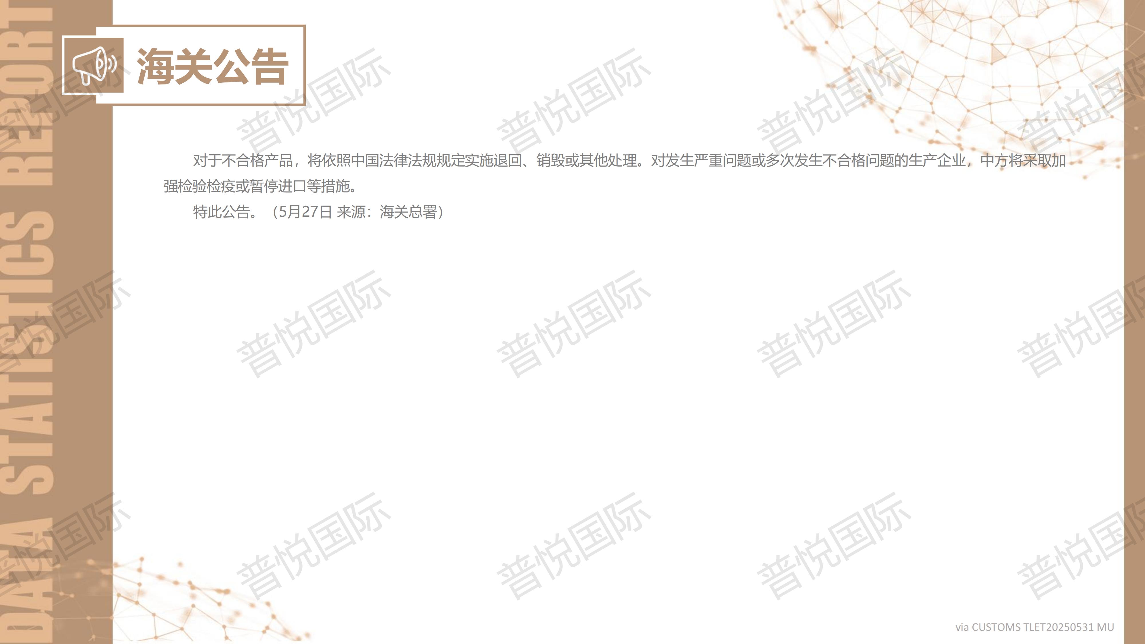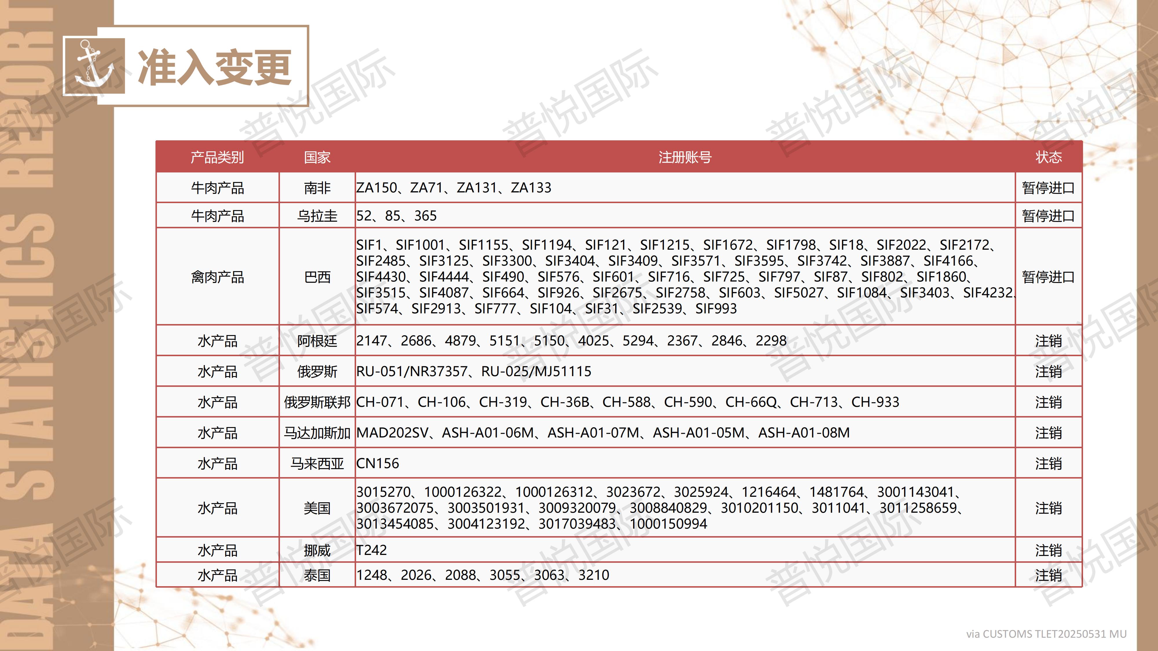 2025年5月未准入境猪、牛、羊、禽、水产品的食品信息