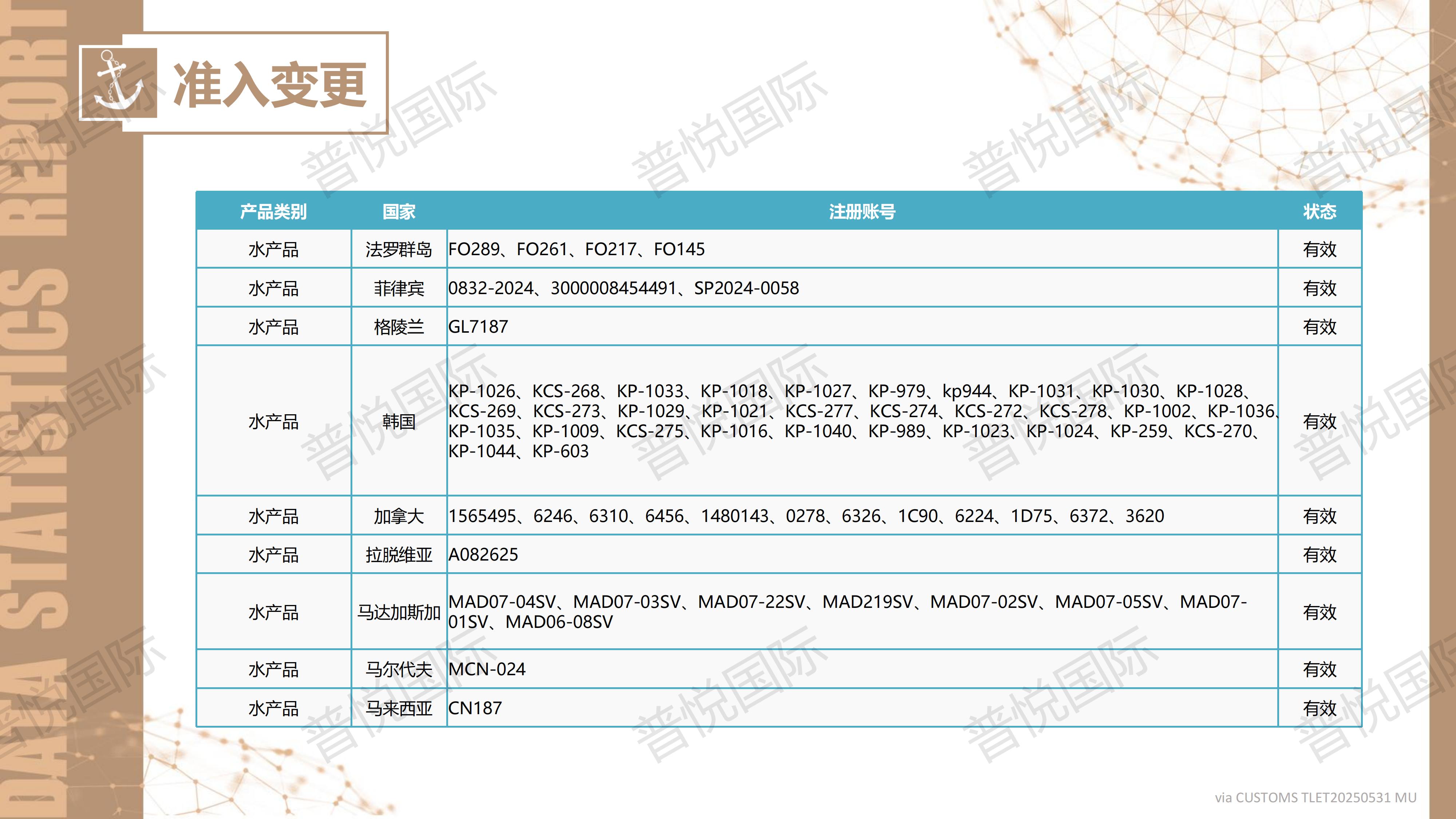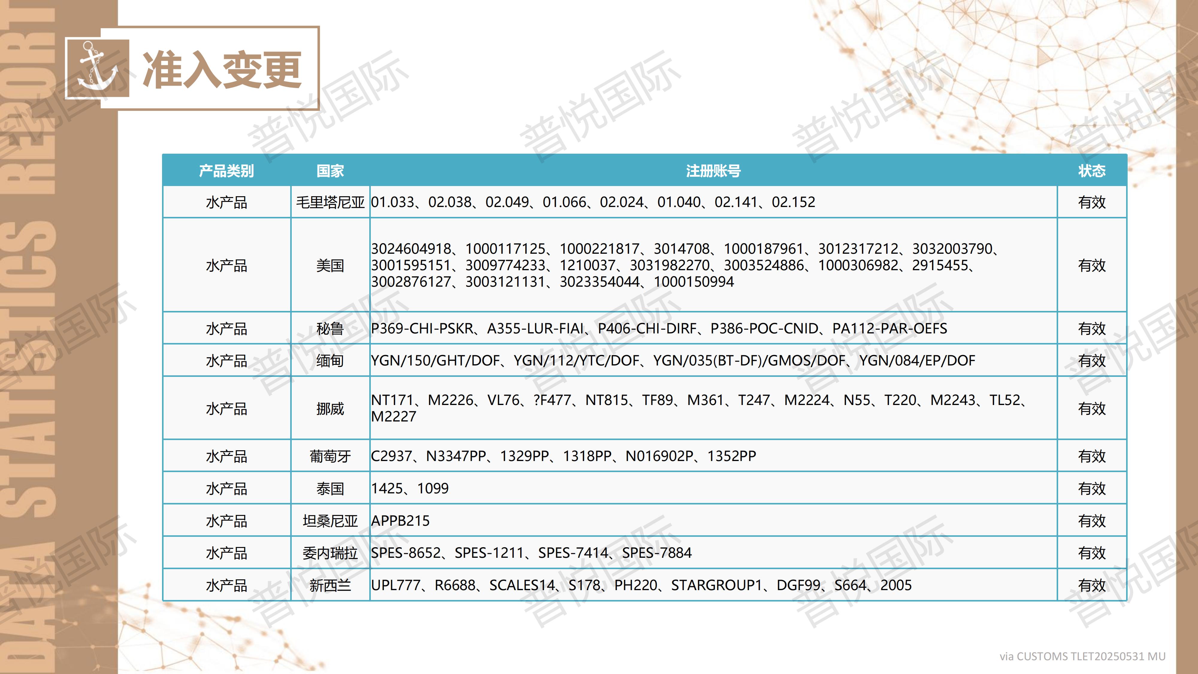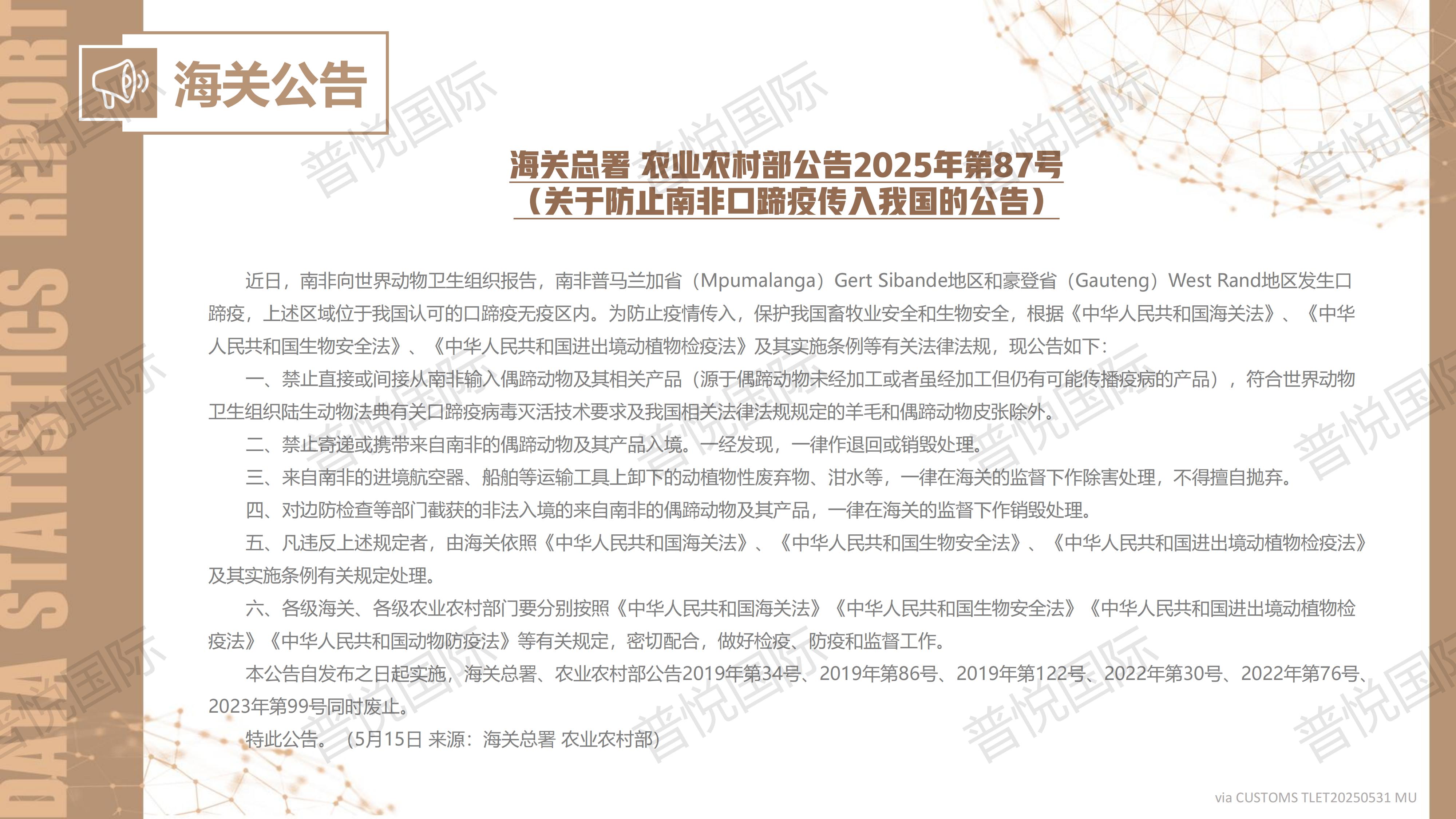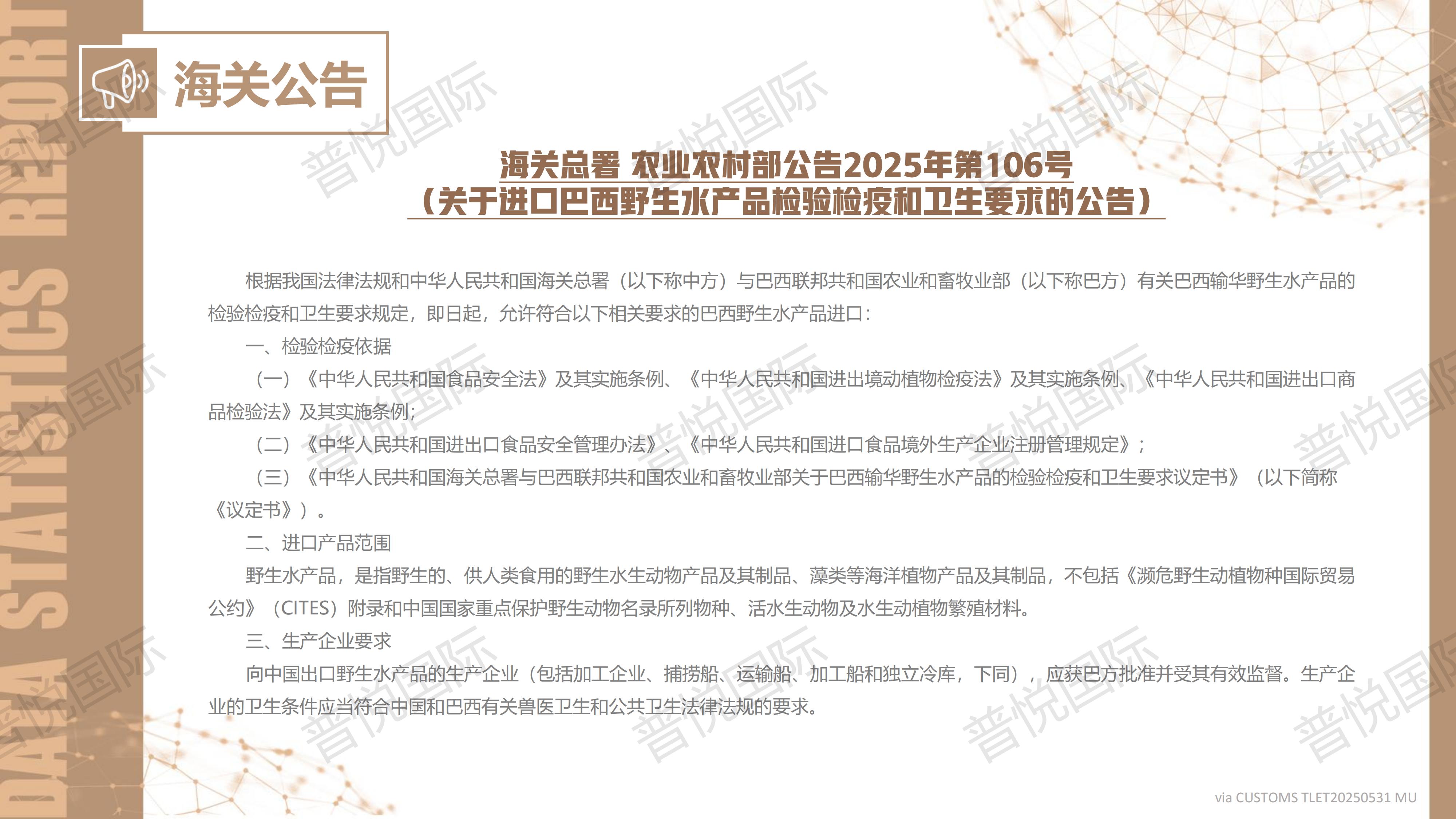 2025年5月未准入境猪、牛、羊、禽、水产品的食品信息