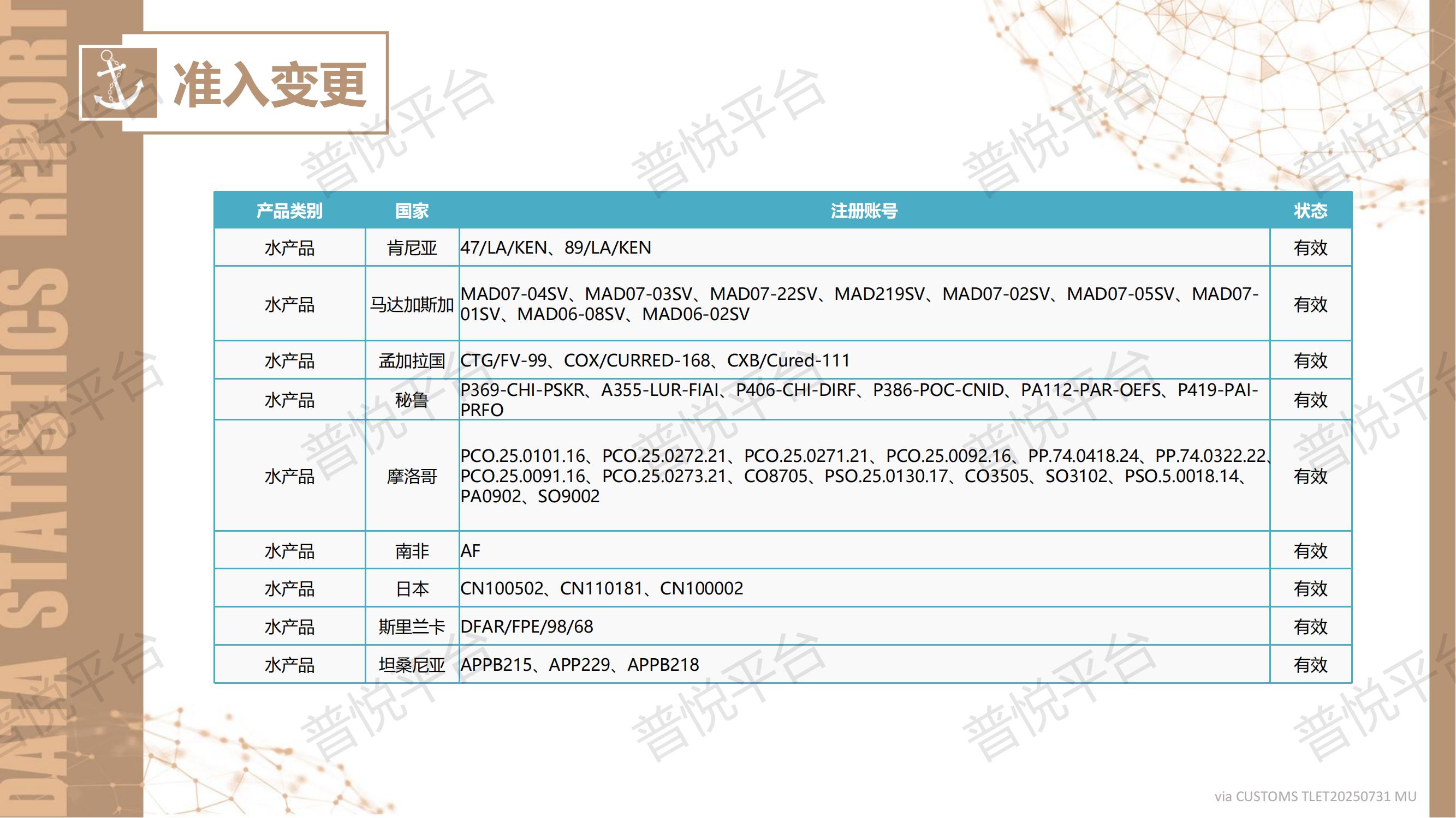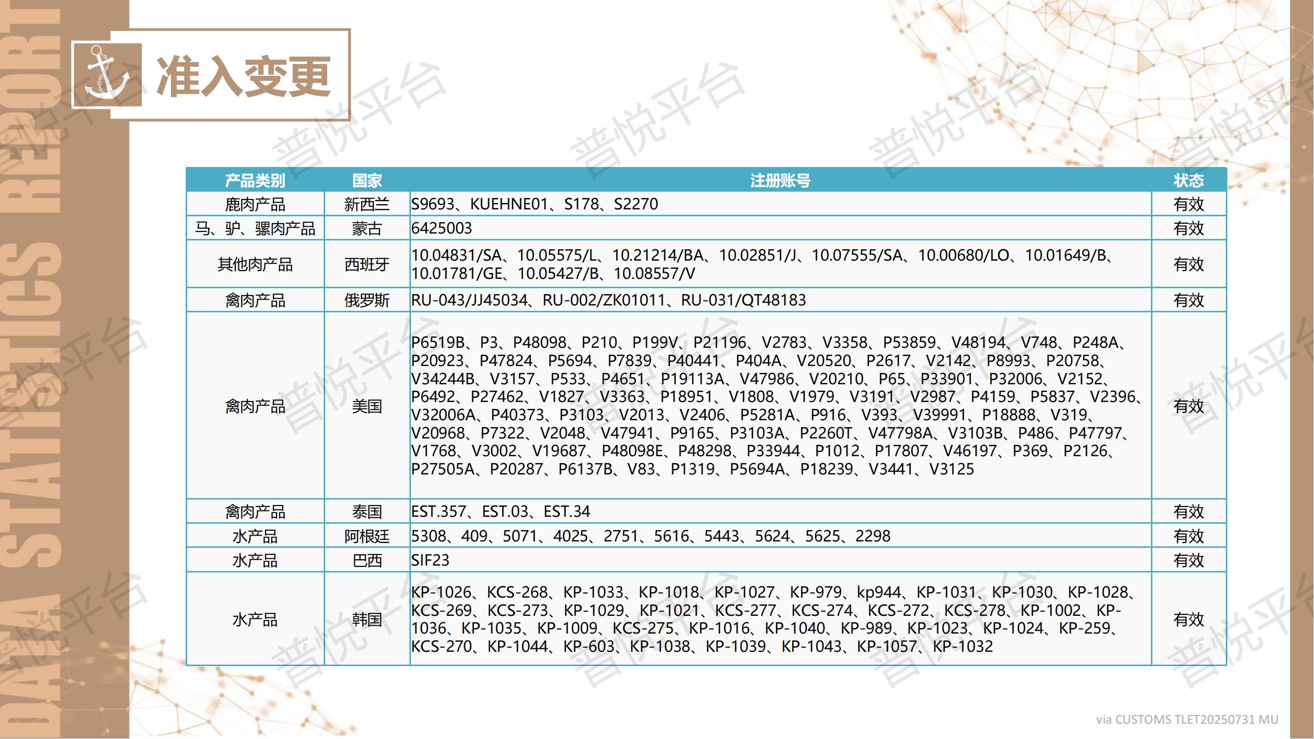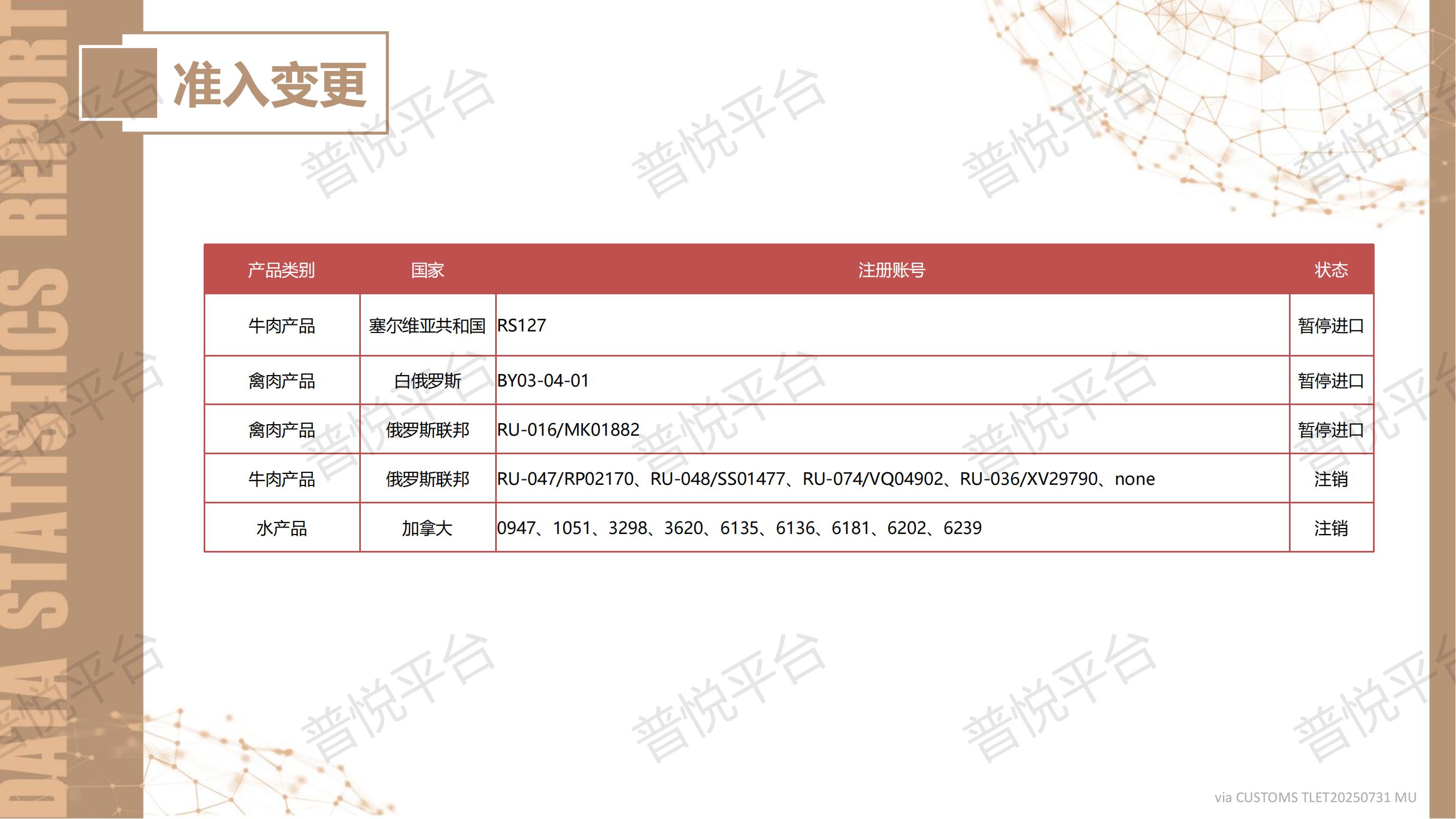 2025年7月未准入境猪、牛、羊、禽、水产品的食品信息