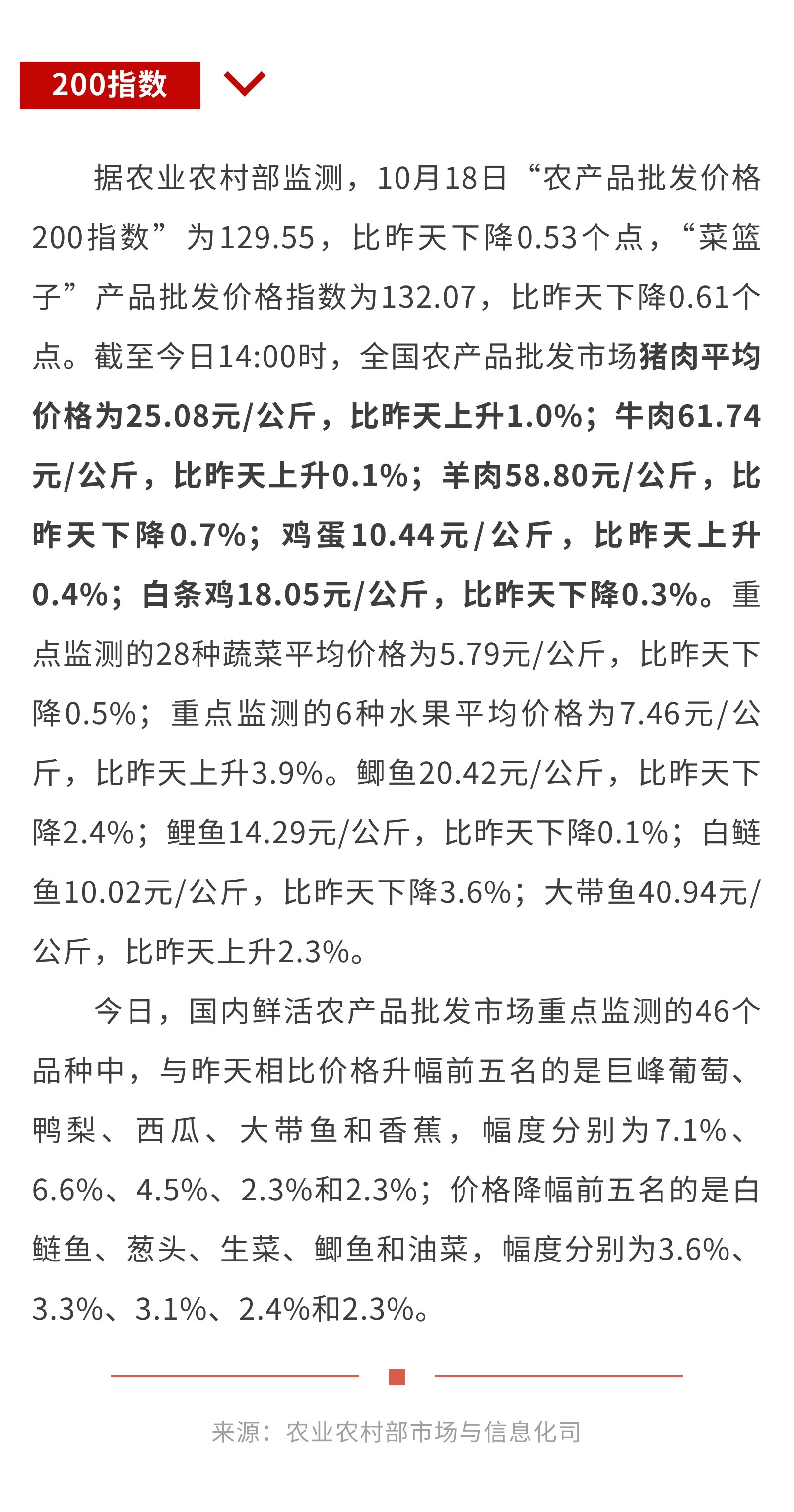 10月18日:“农产品批发价格200指数”比昨天下降0.53个点