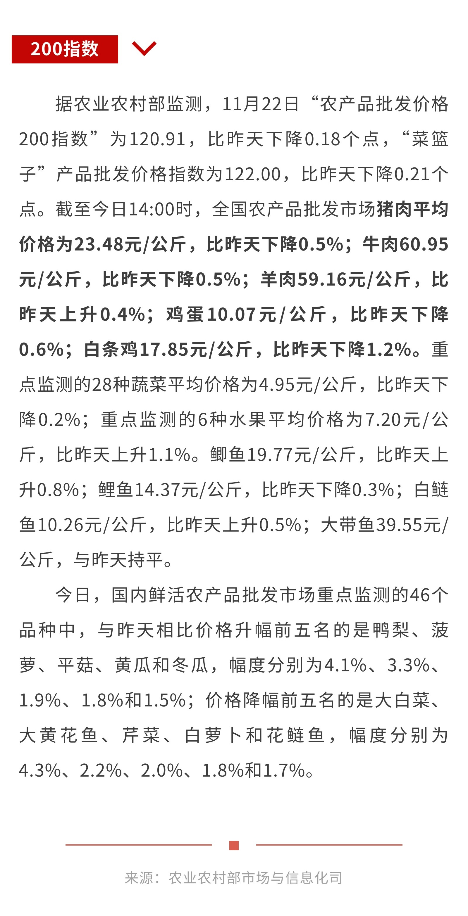 11月22日:“农产品批发价格200指数”比昨天下降0.18个点