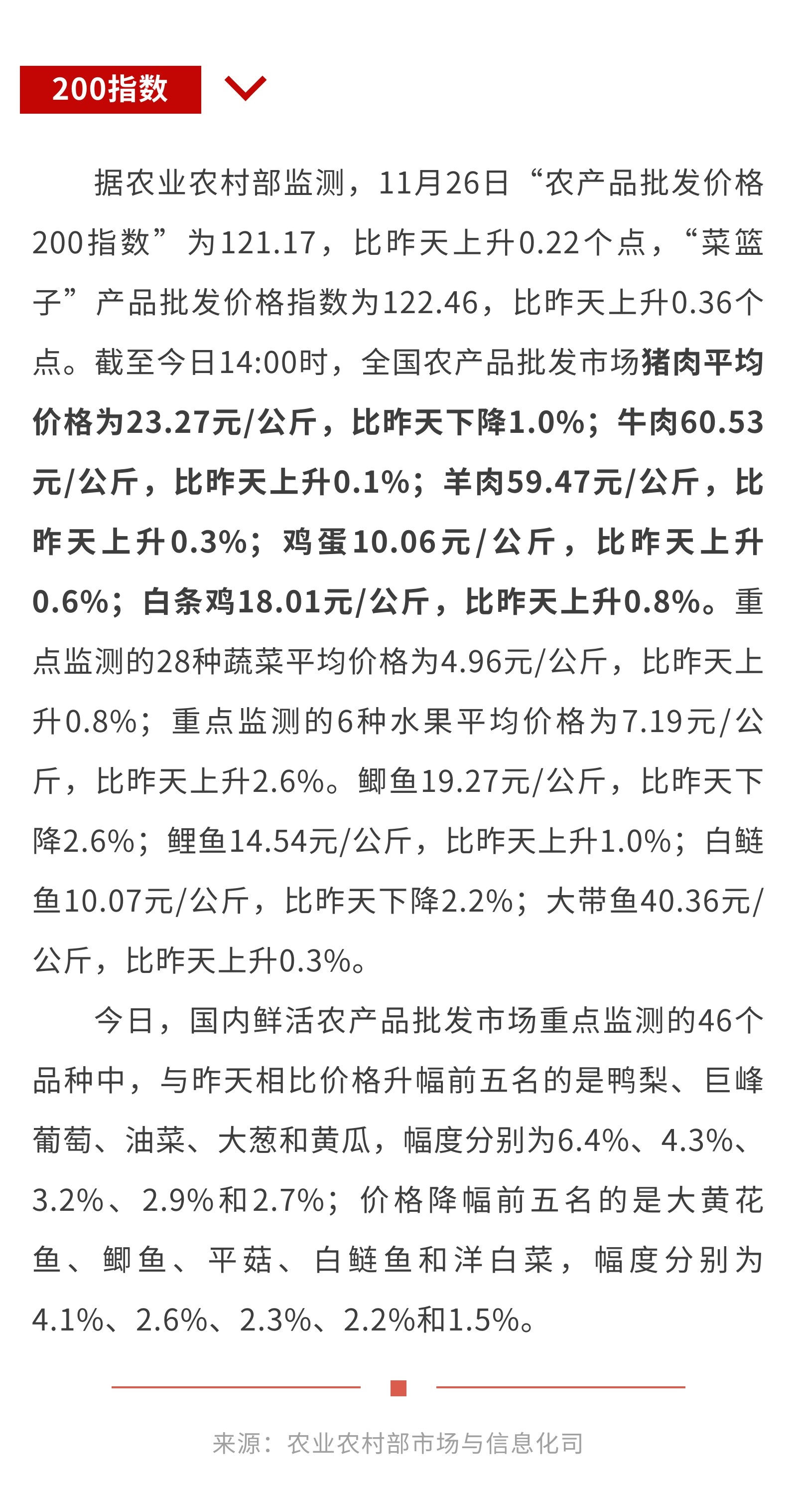 11月26日:“农产品批发价格200指数”比昨天上升0.22个点