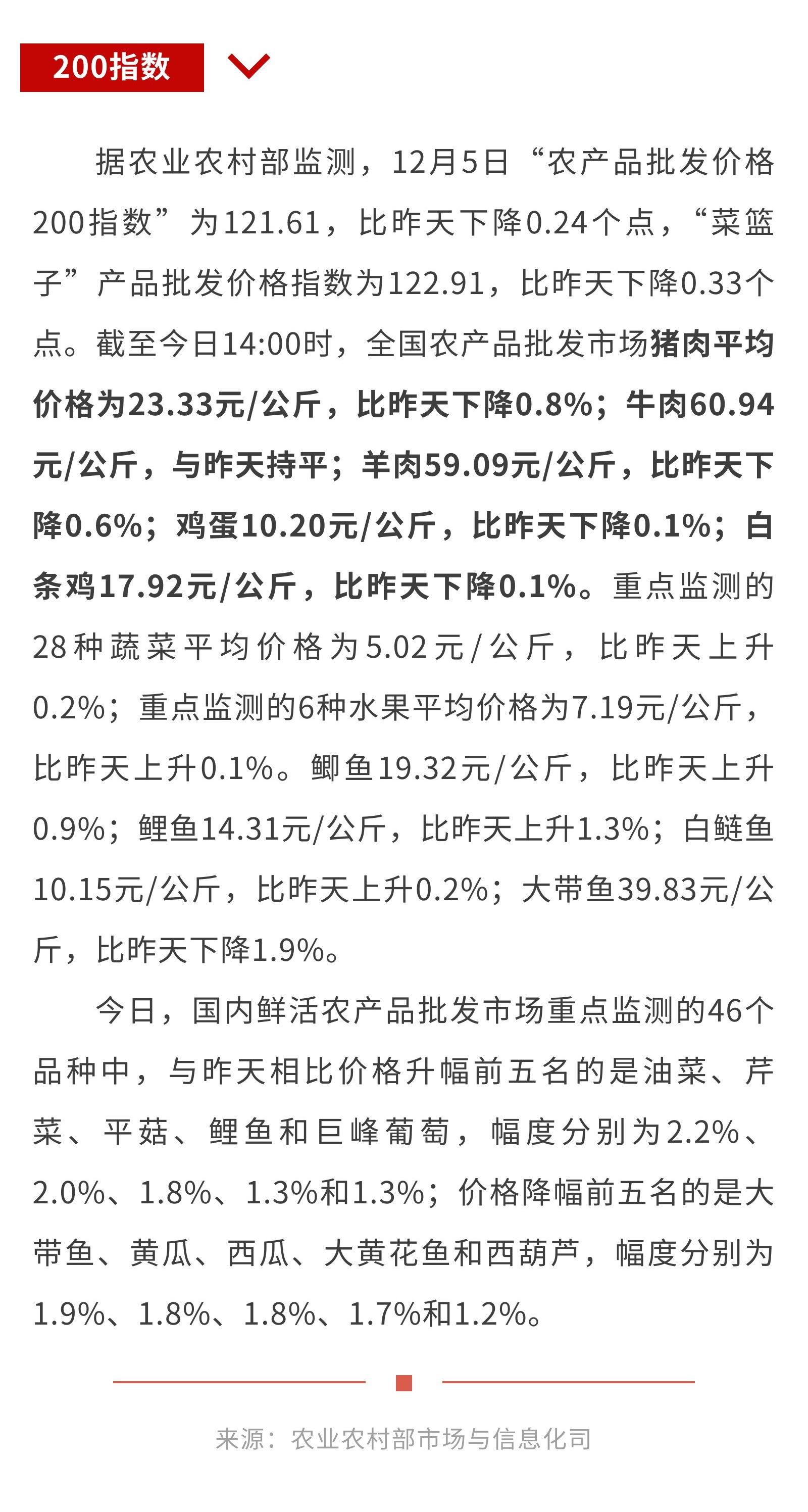 12月5日:“农产品批发价格200指数”比昨天下降0.24个点