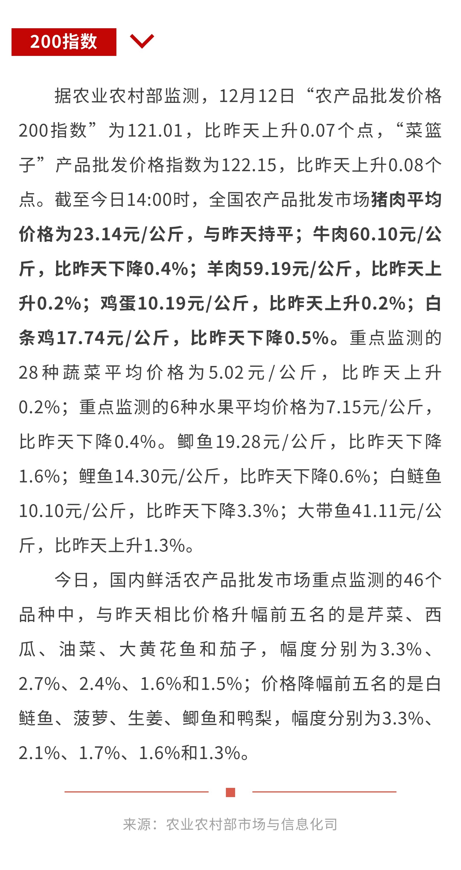 12月12日:“农产品批发价格200指数”比昨天上升0.07个点