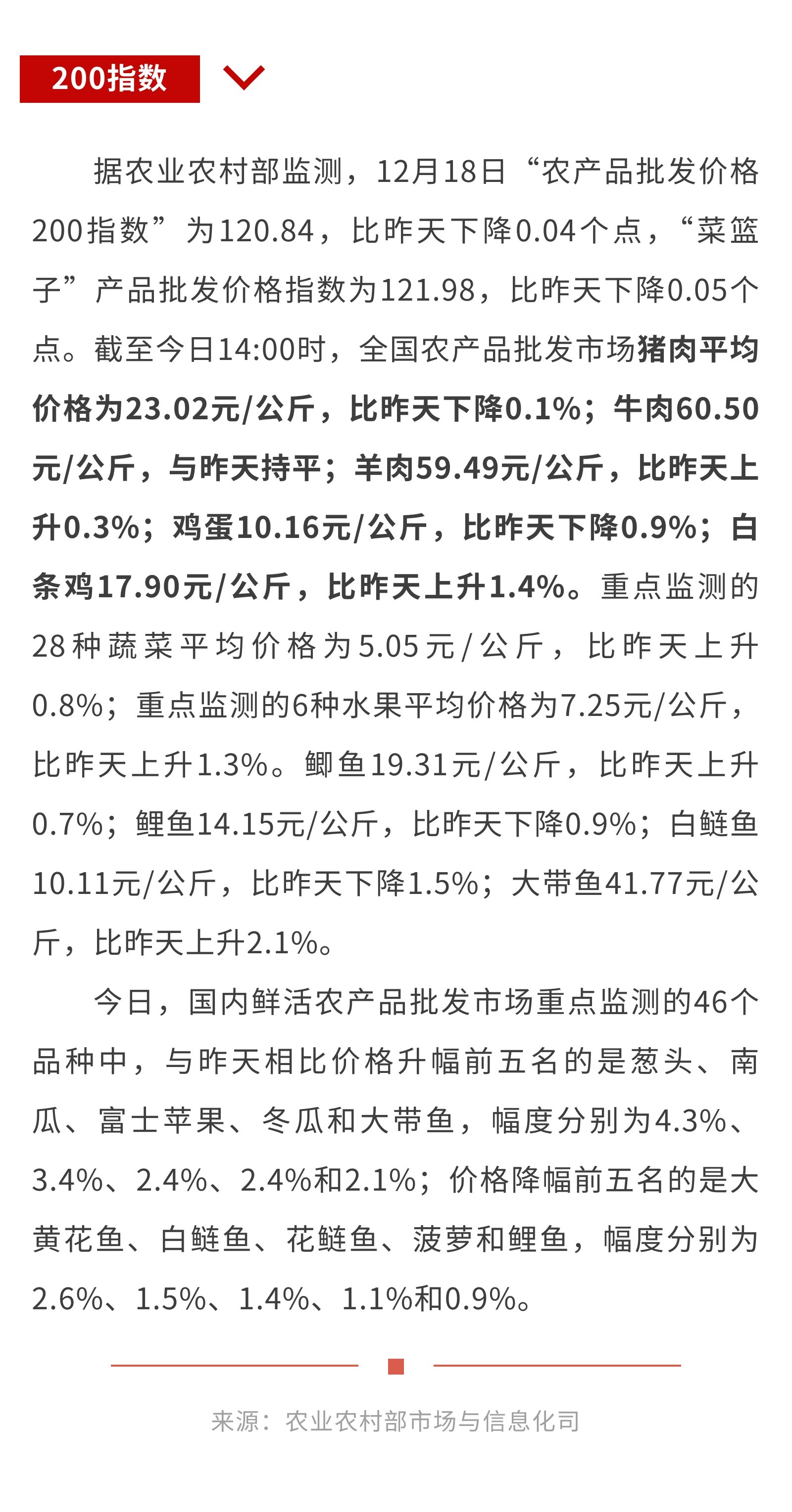 12月18日:“农产品批发价格200指数”比昨天下降0.04个点
