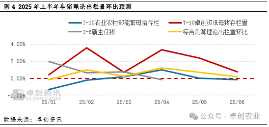 根据生猪繁育周期,通过不同口径(能繁母猪存栏、新生仔猪数)推算,得出2025年1月份生猪理论出栏量环比微减,2-6月份或均呈现环比增加的趋势。