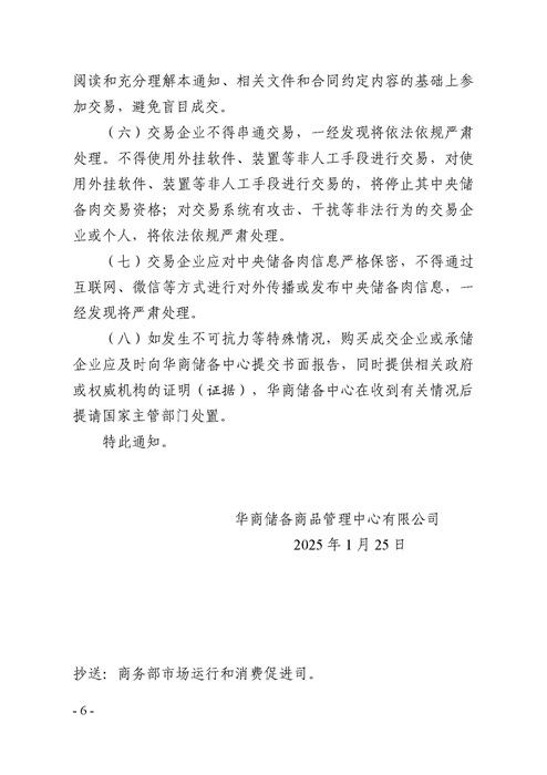 财联社1月25日电,华储网发布关于2025年1月27日中央储备冻猪肉轮换出库竞价交易有关事项的通知,本次出库竞价交易挂牌国产冻猪肉20000吨。