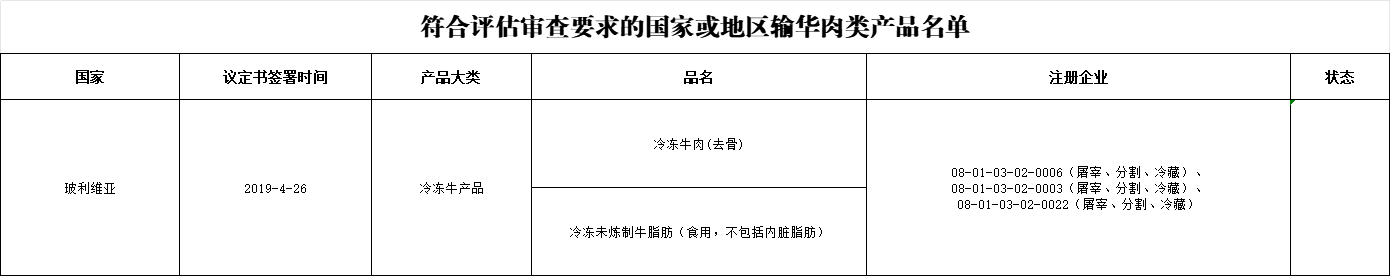 附:玻利维亚海关总署输华肉类产品名单