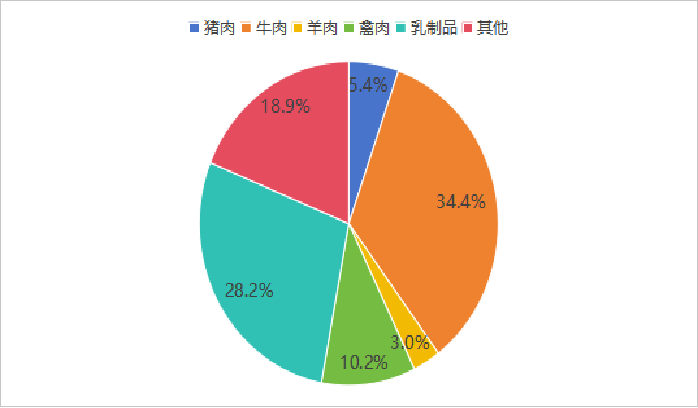3.牛肉进口增长。1—12月,牛肉进口287.4万吨,同比增5.0%;进口额136.9亿美元,同比降3.7%。进口主要来自巴西、阿根廷、乌拉圭、澳大利亚和新西兰等国,分别占进口总量的46.6%、20.7%、8.5%、7.5%和5.2%,合计占88.5%,其中,从巴西、阿根廷进口同比增13.8%、12.9%,从乌拉圭、澳大利亚、新西兰和美国进口同比降11.3%、4.5%、26.9%和11.5%。
