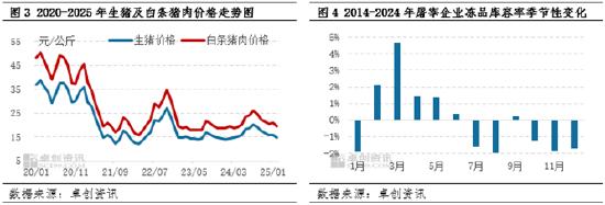 综合来看,2025年上半年屠宰企业出库较少且下游需求偏弱,预计上半年国产冻品猪肉价格或低位徘徊;7-8月国产冻猪肉供需双增,在国产鲜品价格略高且进口冻品数量较少的情况下,国产冻猪肉价格有上涨可能,但幅度或有限;9-12月份冻猪肉需求或不及预期,市场供大于求,价格不乏有下降风险。总体来看,卓创资讯预计2025年国产冻猪肉价格或同比下降,年内交易活跃度低于2024年。